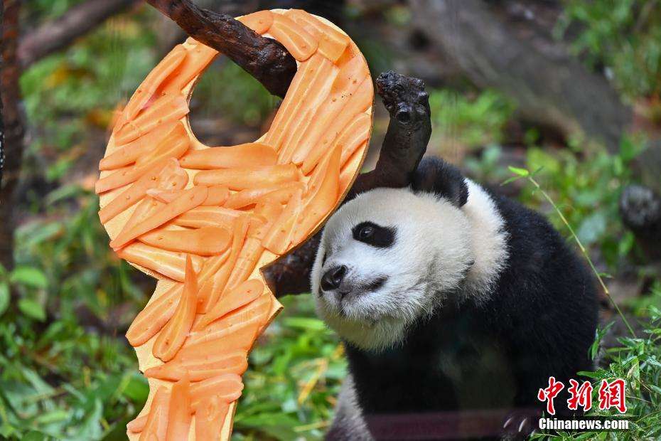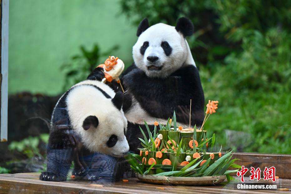 图为6月18日,大熊猫“妹珠”与母亲“萌萌”品尝特制生日蛋糕。(图片来源:本文图片均据中新网)