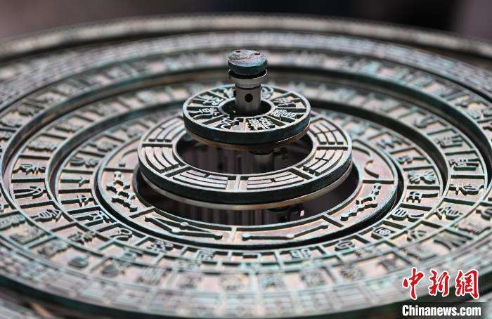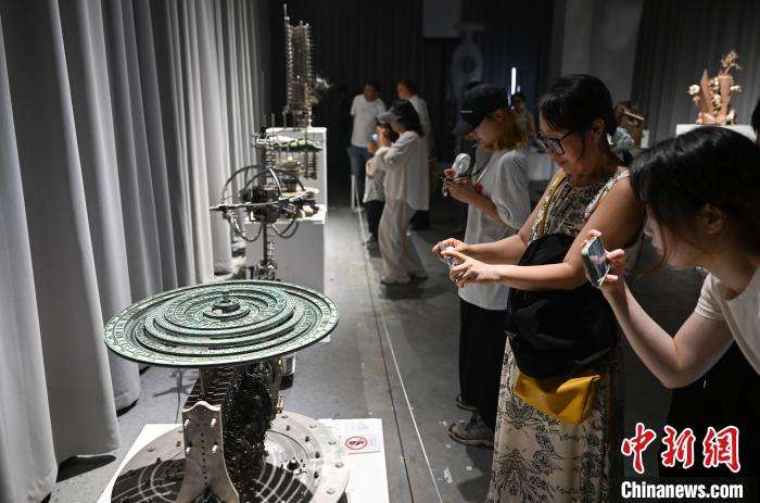图为6月18日,融入中国篆文和罗盘等元素、通过机械传动方式模拟水滴落水形成涟漪波动的《滴动仪》展出。