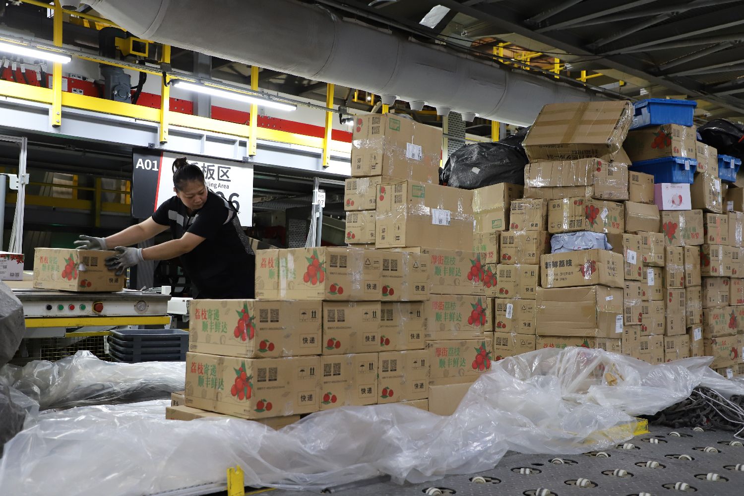 在亚洲首座专业货运机场——湖北鄂州花湖国际机场,每日近50吨新鲜荔枝经此飞往中国各地。