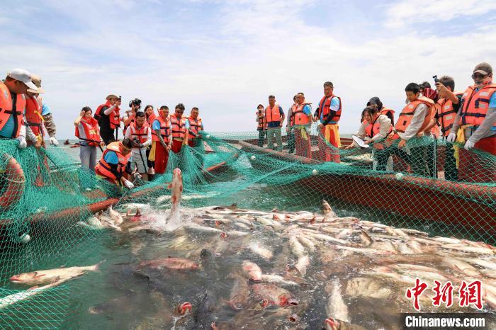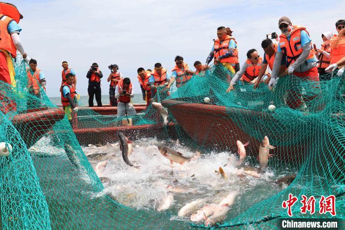 位于新疆博湖县境内的博斯腾湖在休渔100多天后,迎来开湖捕鱼。(图片来源:本文图片均据中新网)