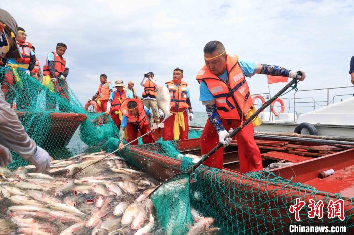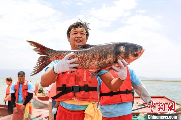 6月21日,位于新疆博湖县境内的博斯腾湖在休渔100多天后,迎来开湖捕鱼,当天第一网捕鱼超8吨。只见几十名渔民站在渔船上喊着号子,将巨大的渔网从湖中缓缓拉出,鲜鱼欢腾跳跃。