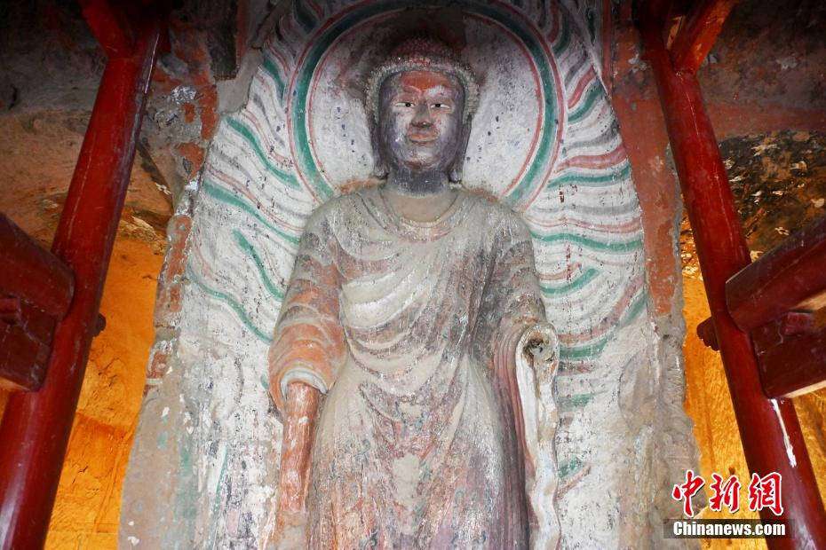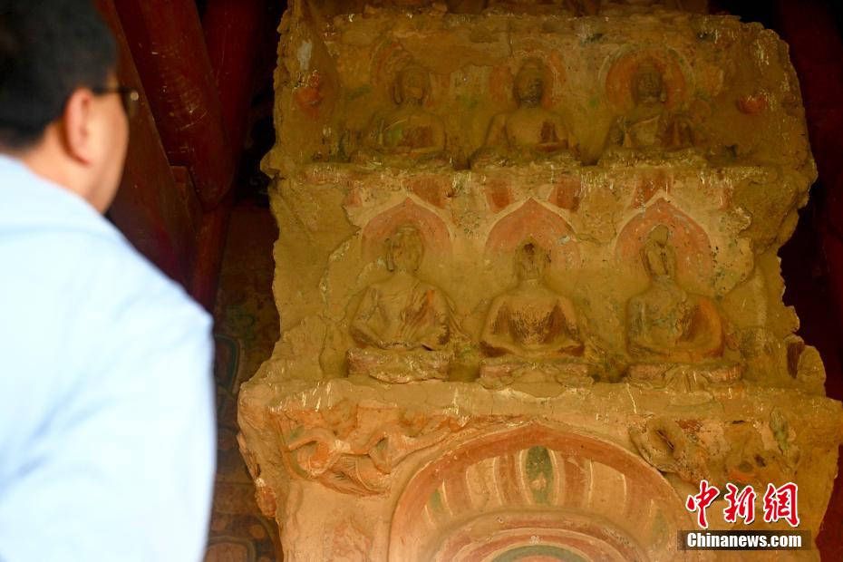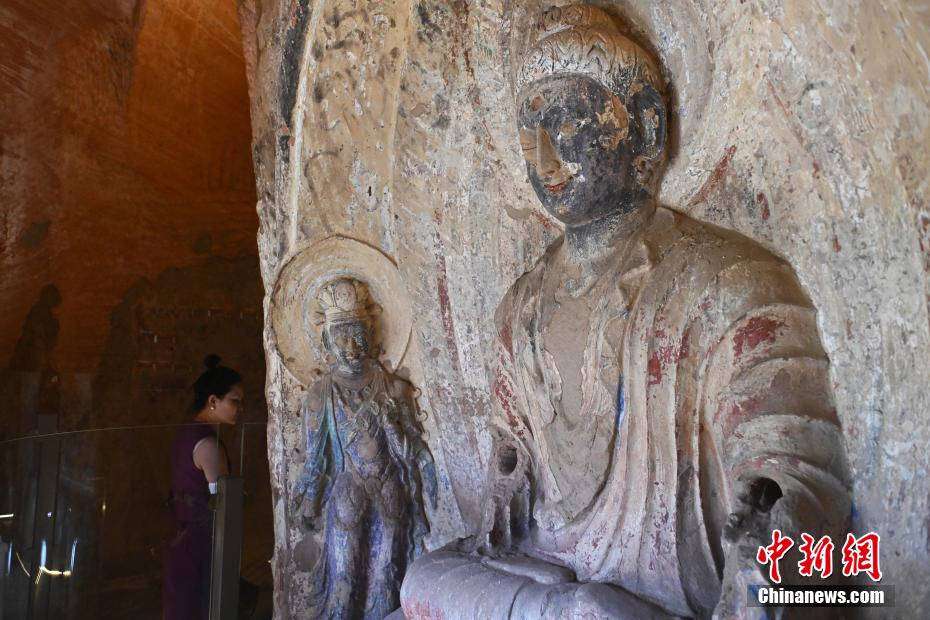 图为6月23日拍摄的马蹄寺石窟塑像。