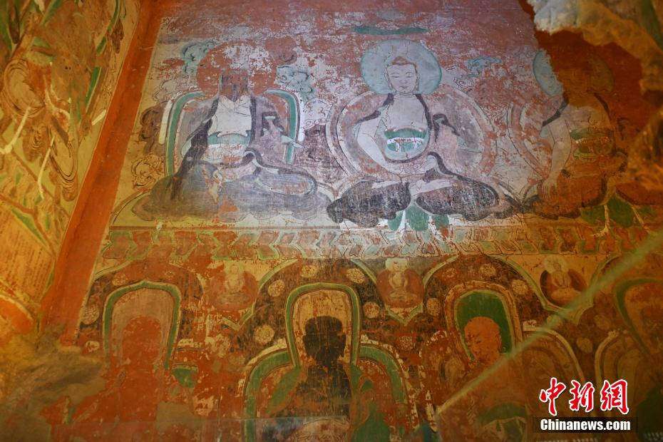 图为6月23日拍摄的马蹄寺石窟壁画。