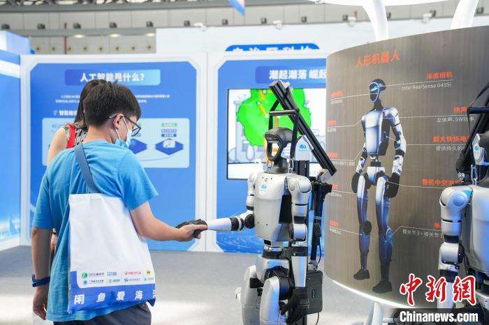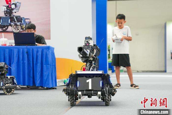 儿童体验操作智能机器人。(图片来源:本文图片均据中新网)