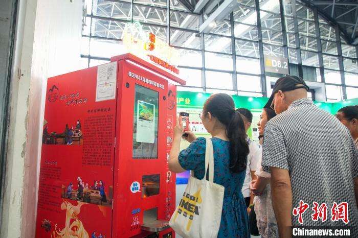 一台“AI智能螺蛳粉售卖机”吸引参观者。