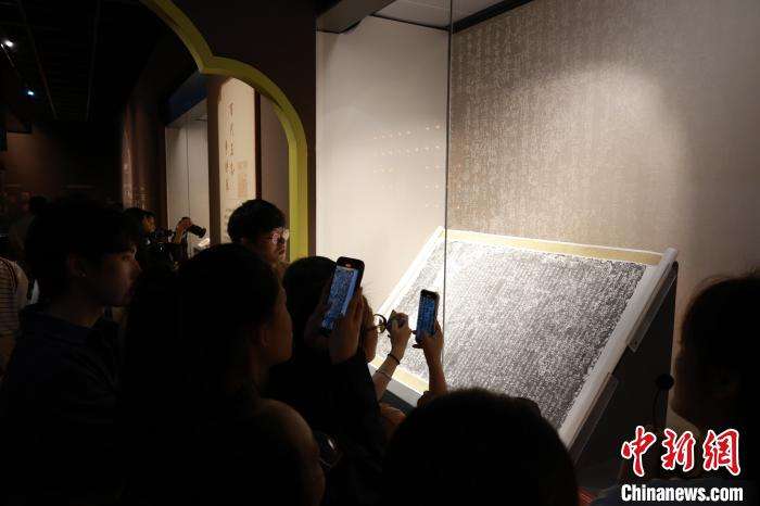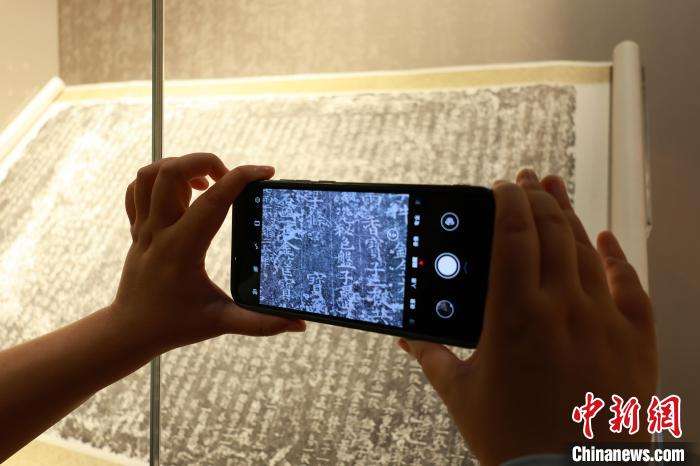 图为6月24日,游客拍摄《衣物帐》碑拓本。