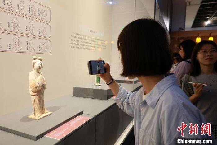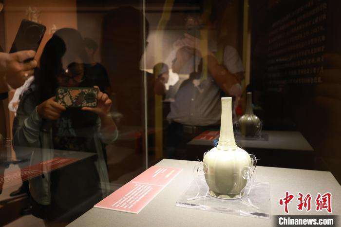 图为6月24日,游客观看法门寺出土的“八棱净水秘色瓷瓶”。