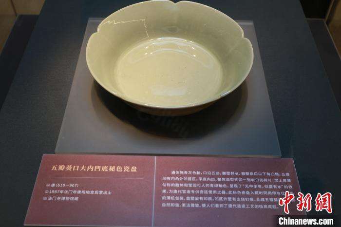 图为6月24日,展出的秘色瓷“五瓣葵口大内凹底秘色瓷盘”。