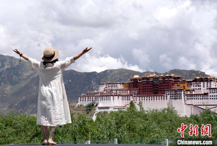 6月24日,游客在一观景餐厅与布达拉宫同框拍照。(图片来源:本文图片均据中新网)