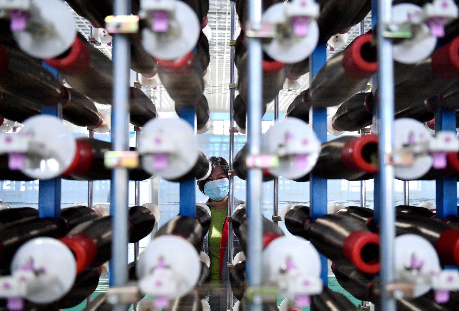 6月24日,围场县一家玄武岩纤维生产企业的工人在生产车间忙碌。(图片来源:本文图片均自新华社)