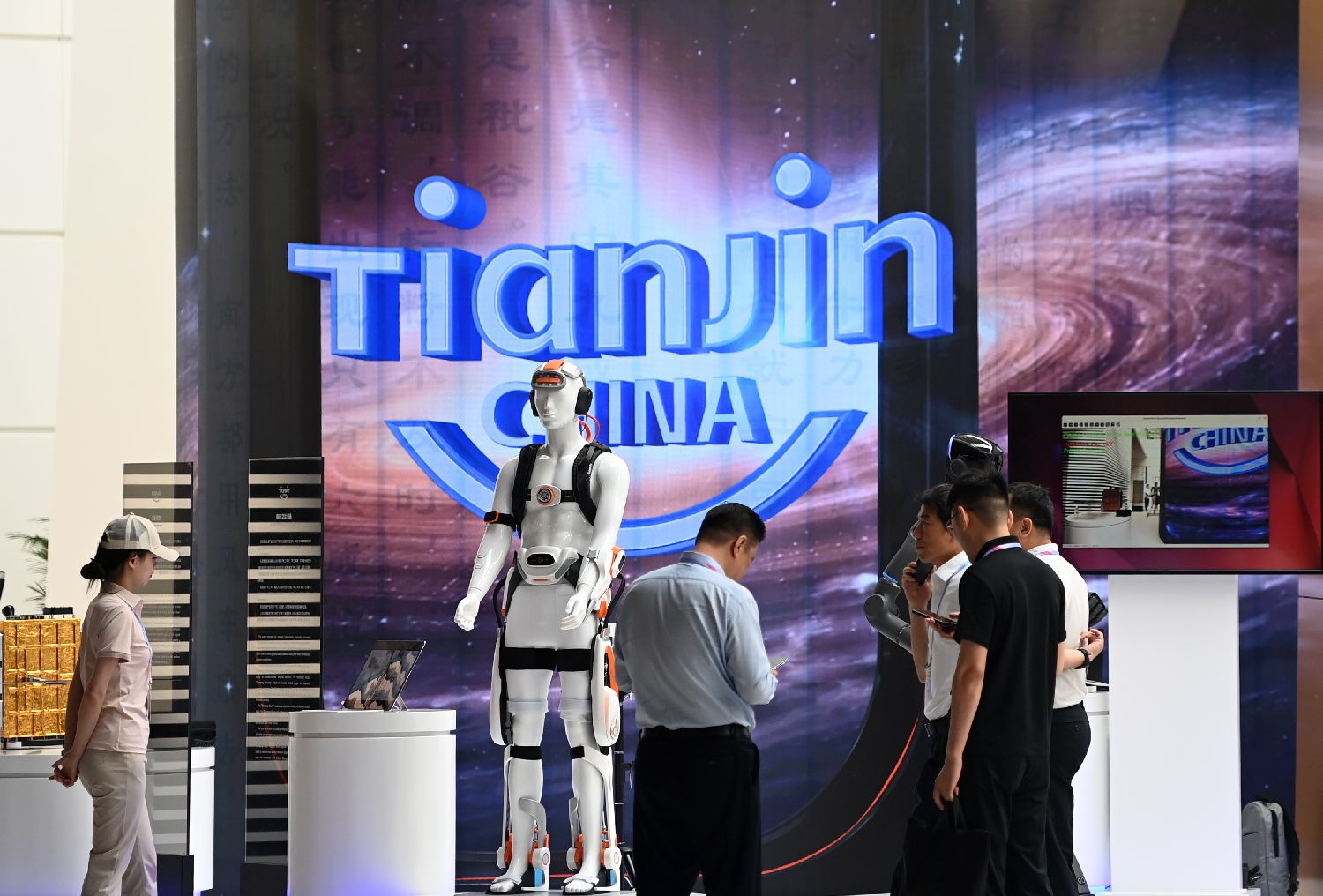 6月25日,嘉宾在天津展区参观。