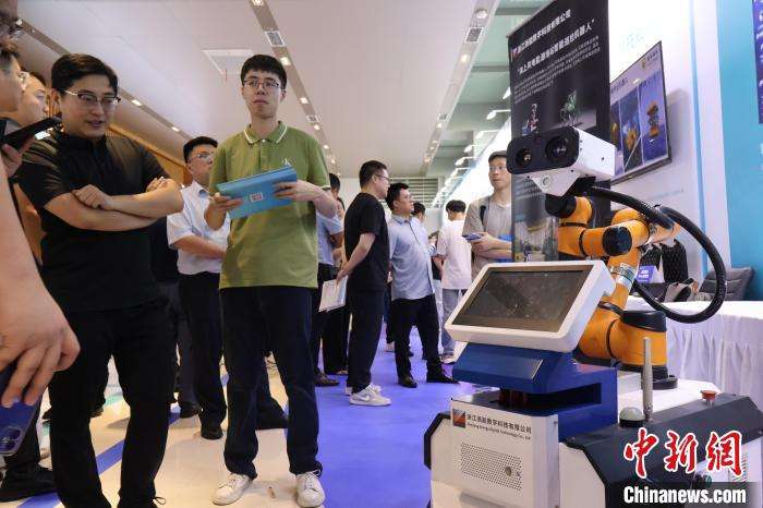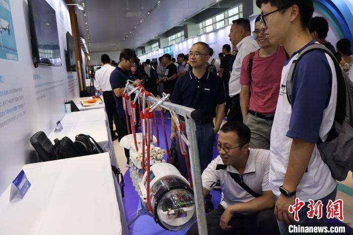 图为6月26日,参会者了解海上风电能源场站智能巡检机器人。