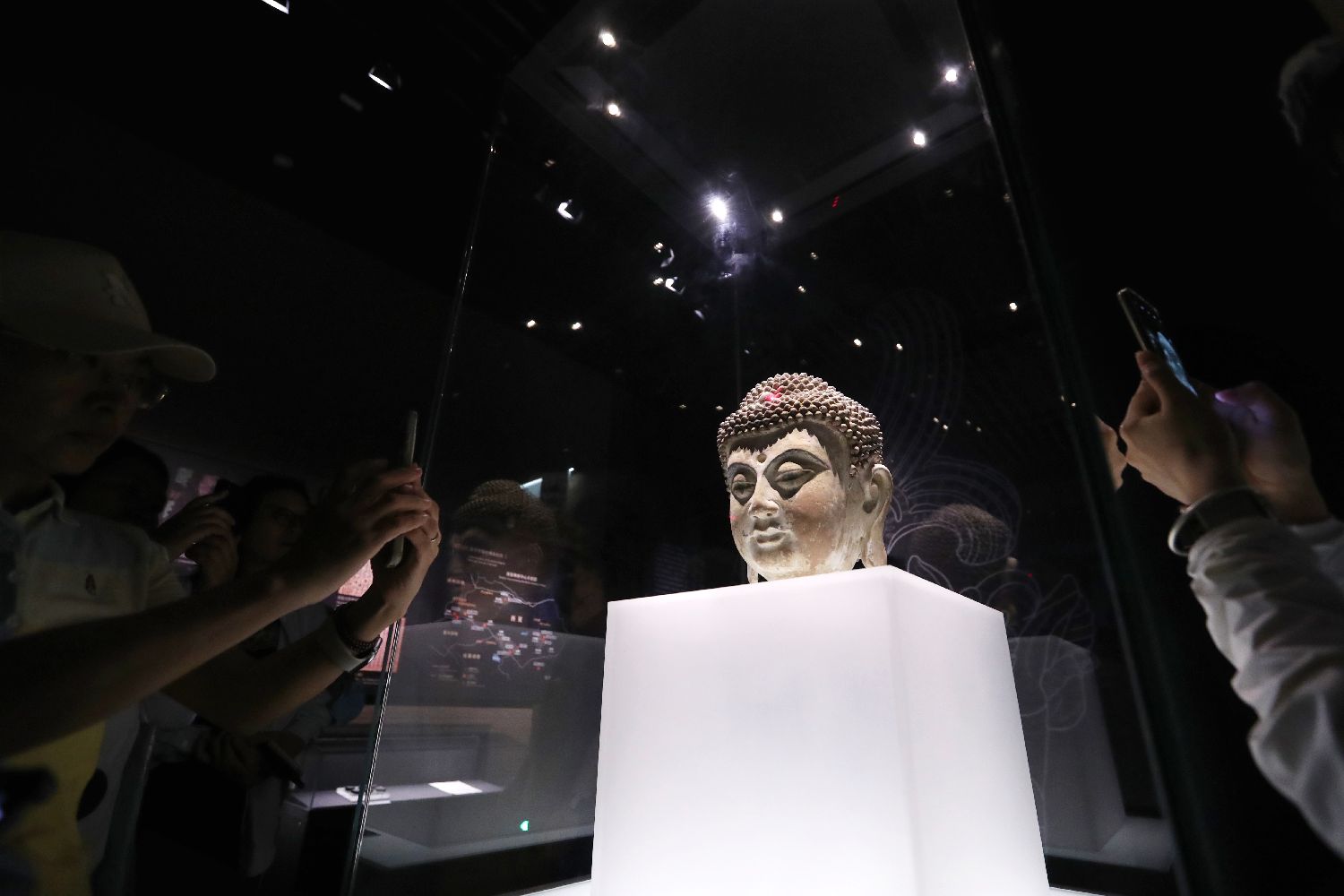 在西夏陵博物馆展出的1990年宁夏贺兰县宏佛塔出土的佛头像。