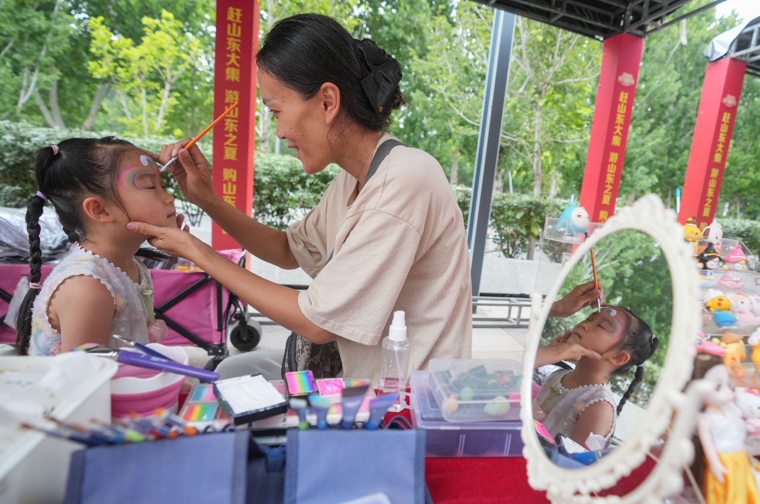 6月29日,在“黄河大集”美术市集,一名小朋友在体验面部绘画。(图片来源:本文图片均据新华社)