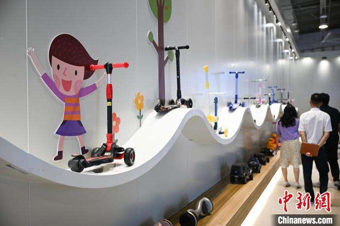 7月1日,浙江永康,参观者了解品类丰富的儿童车。