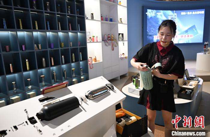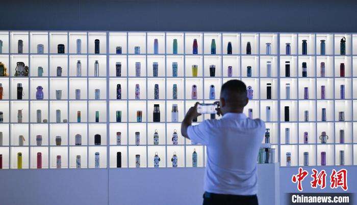 7月1日,浙江永康,参观者拍摄琳琅满目的水杯,永康是中国最大的保温杯(壶)生产基地和出口基地,相关企业达到2900多家。