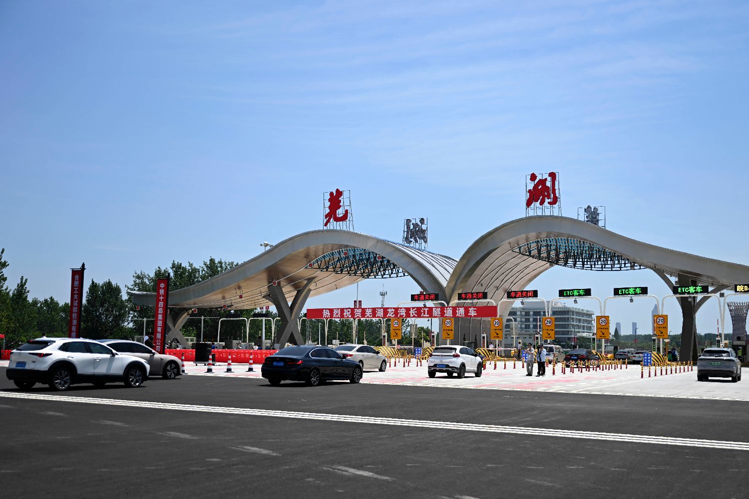 芜湖龙湾长江隧道是安徽省首条过江隧道,被誉为“八百里皖江第一隧”。图为7月1日,车辆通过芜湖龙湾长江隧道收费站。(图片来源:本文图片均自新华社)