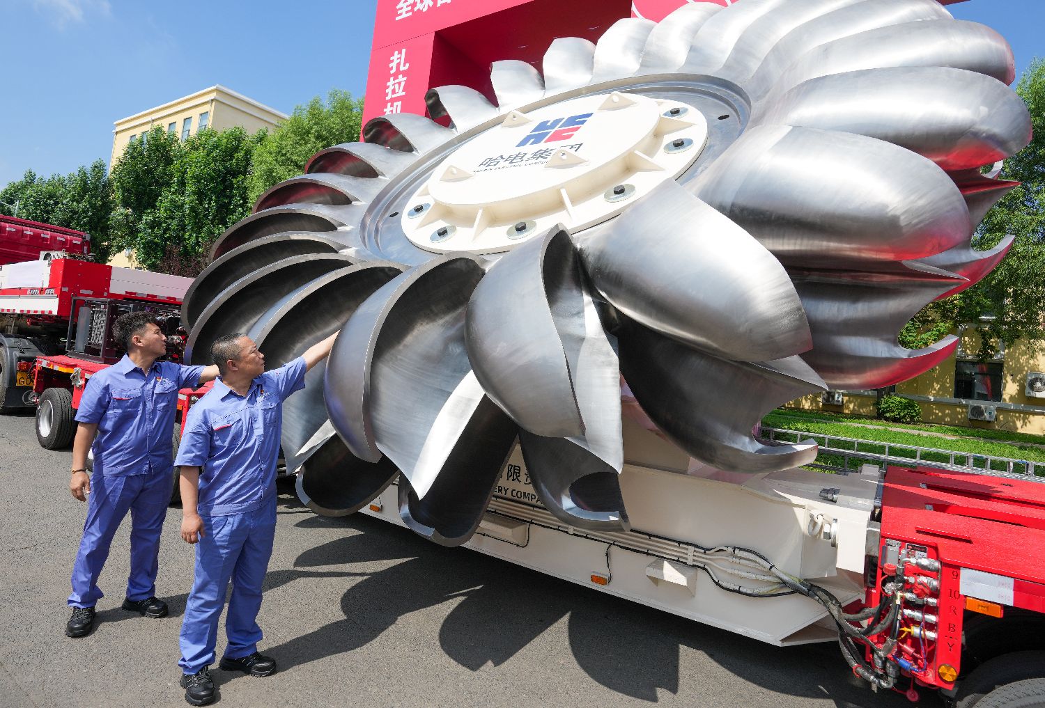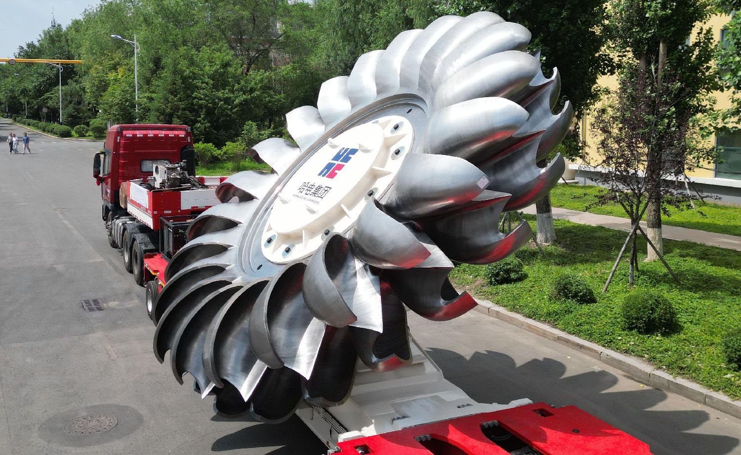 7月2日,在哈电集团哈尔滨电机厂有限责任公司厂区,转轮启运发车。