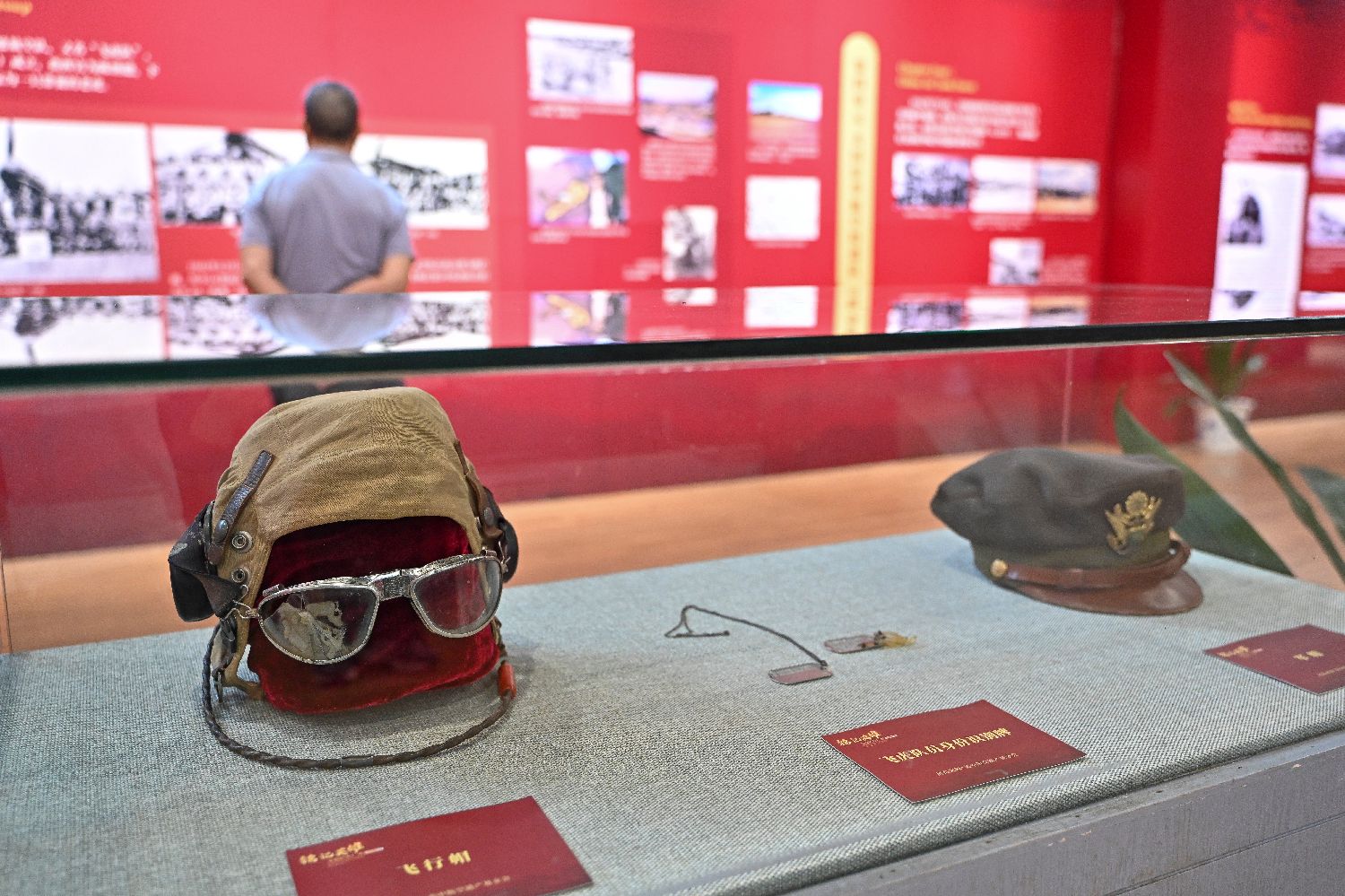 7月3日,“铭记英雄——飞虎队在广东”历史图片展(广州站)暨广东省首批飞虎队友谊学校授牌仪式在广东省立中山图书馆开幕。图为展览中展出的飞虎队历史实物。