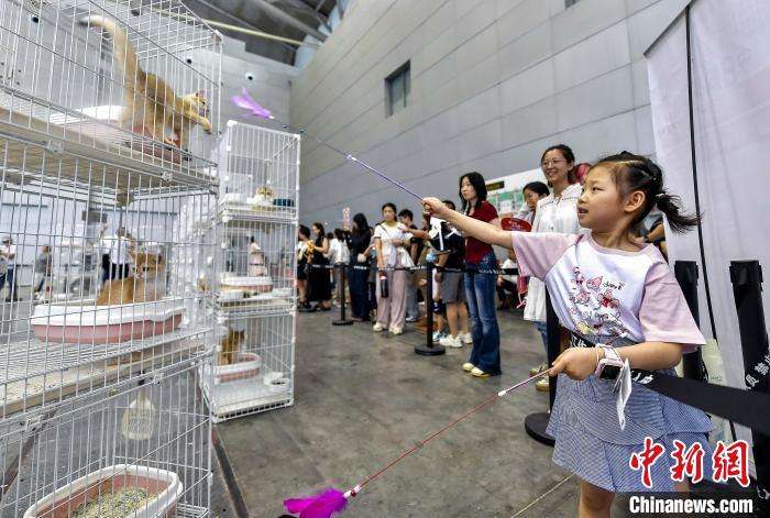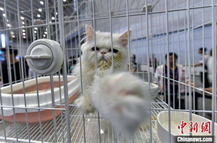 7月5日,一只宠物猫将爪子伸出笼子。(图片来源:本文图片均据中新网)