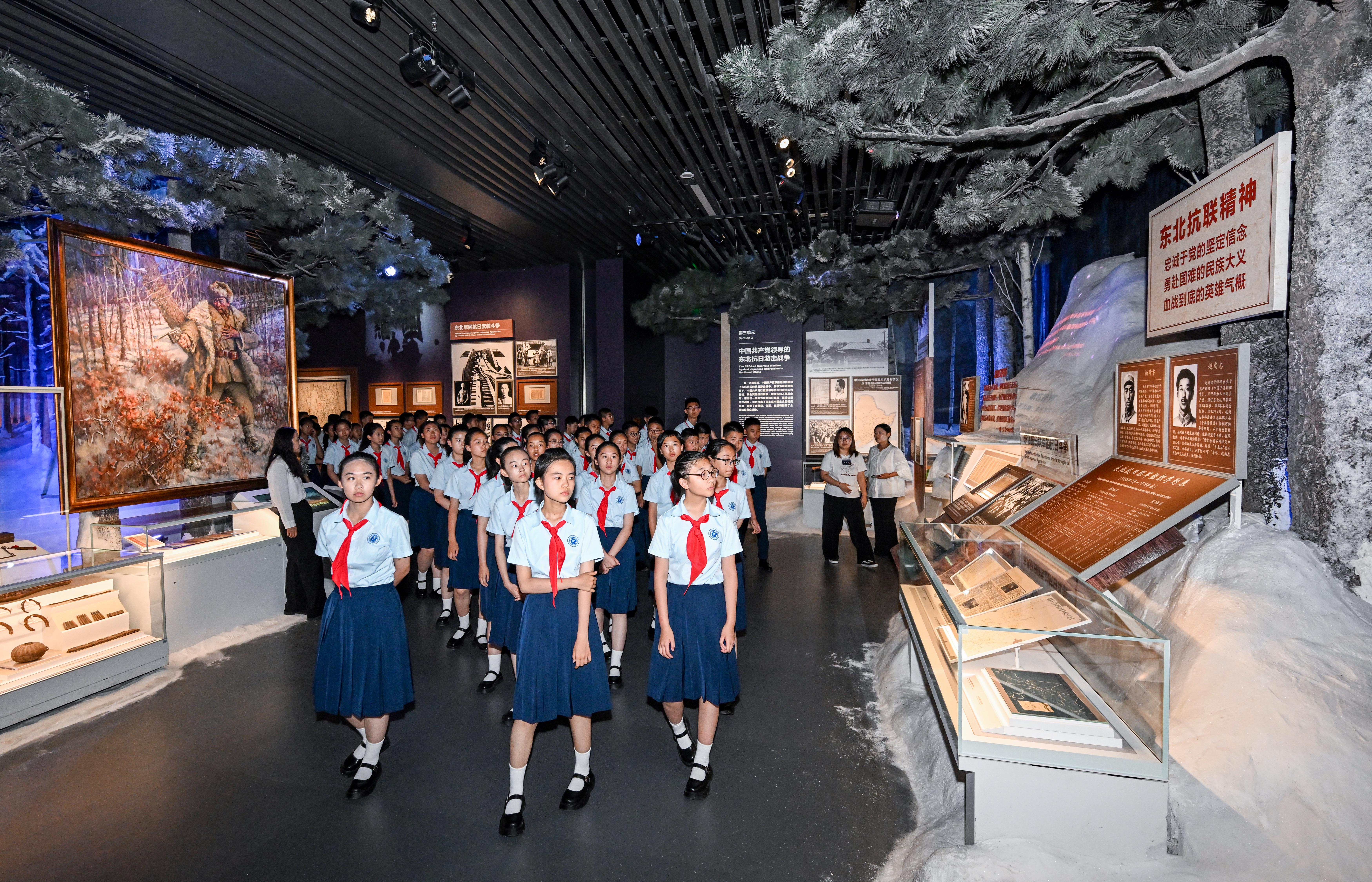 北京市第十二中学的少先队员参观主题展览。