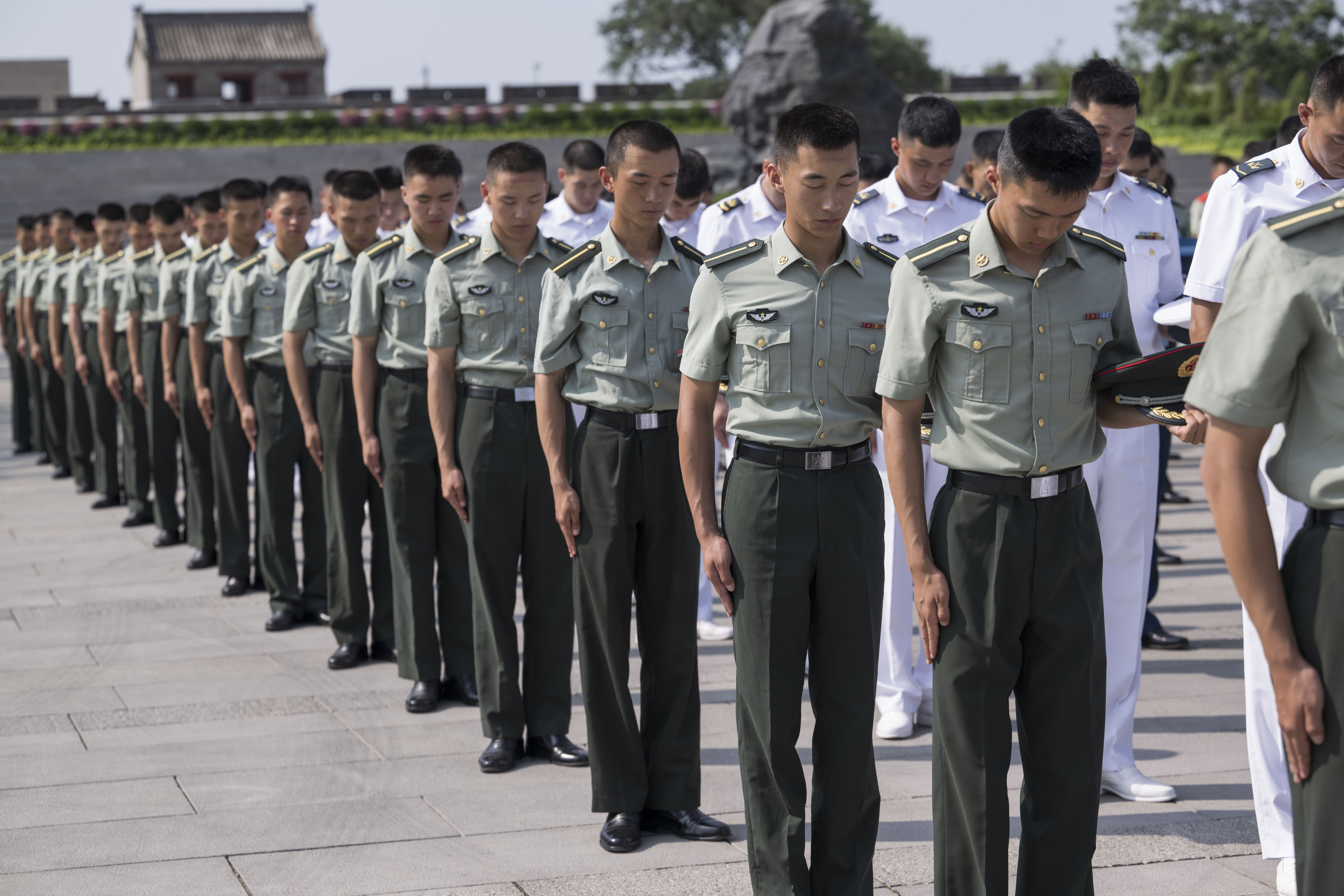 部队官兵代表在现场默哀。