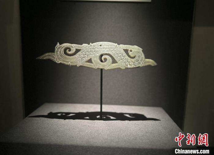 博物馆内展示青玉透雕龙形佩(佩玉)。