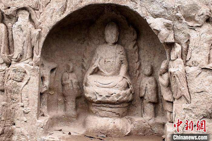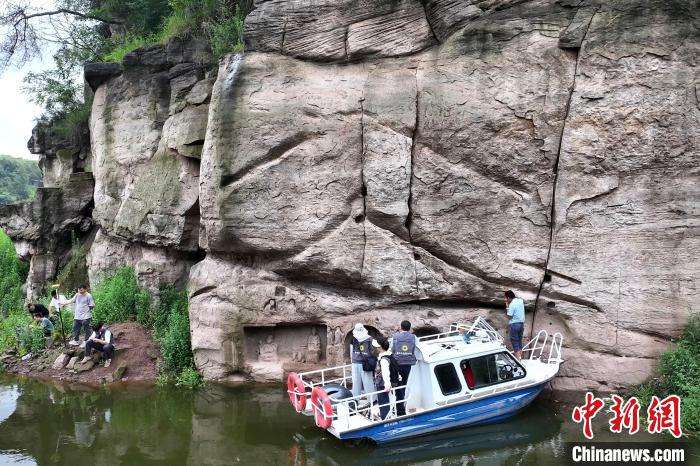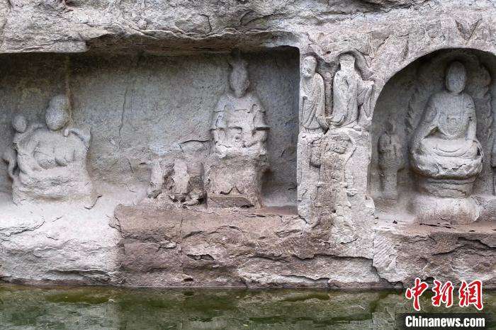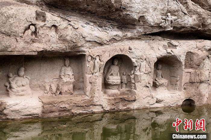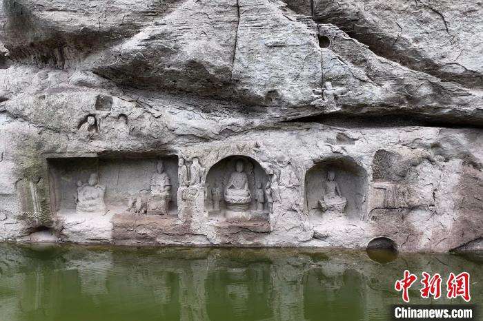 露出水面的宋代摩崖造像。(图片来源:本文图片均据中新网)
