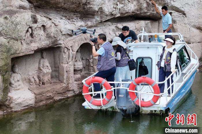 文物保护工作者对新发现的宋代摩崖造像开展保护研究工作。