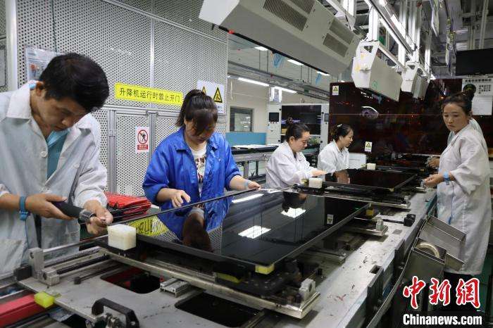7月7日,活力中国调研行记者走进咸阳高新区探寻陕西电子显示产业的发展密码。咸阳G8.5+基板玻璃生产线项目现场,洁净的车间内玻璃液经溢流槽垂落成0.4毫米薄片。冠捷显示科技(咸阳)有限公司生产车间则依托自动锁附、智能搬运等自动化设备,每8秒就有一台液晶电视产出。(图片来源:本文图片均自中新网)