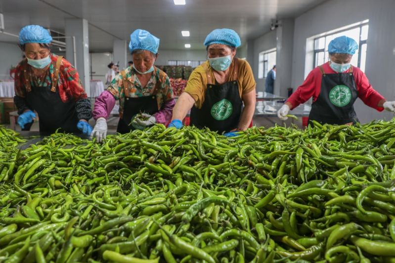 7月7日,分拣女工在富硒辣椒产业园的分拣中心工作。(图片来源:中新社)