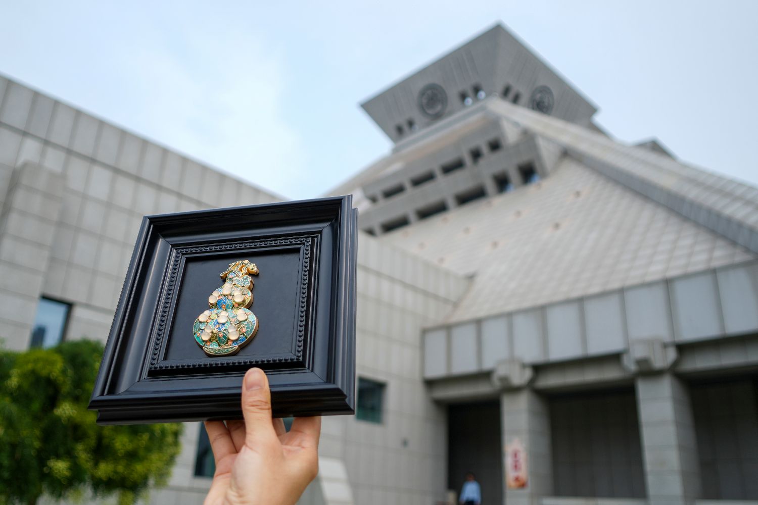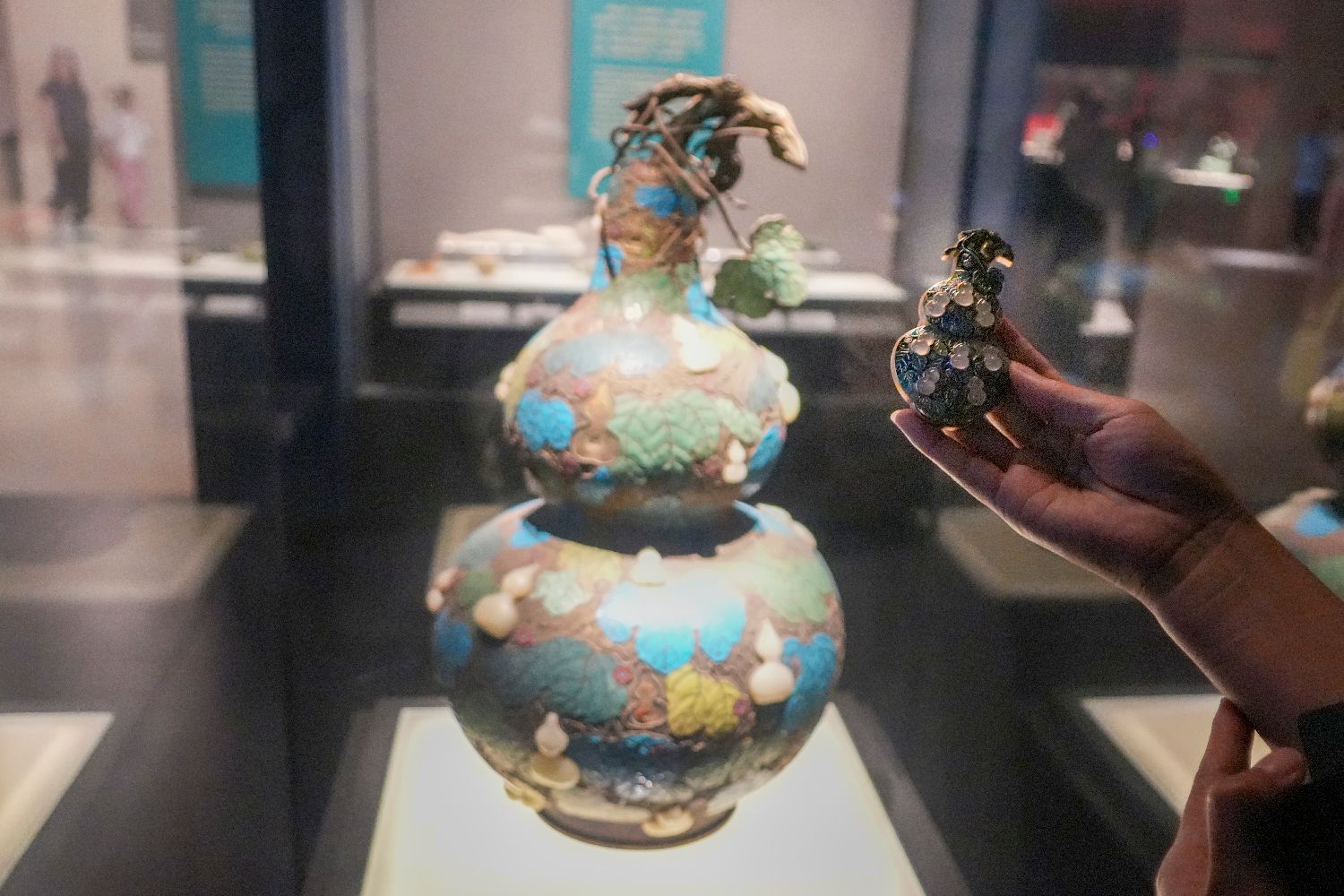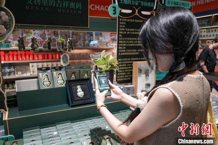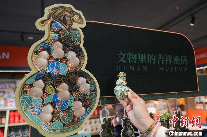 河南博物院“珐琅镶玉葫芦”文创产品吸引游客拍照。(图片来源:中新网)