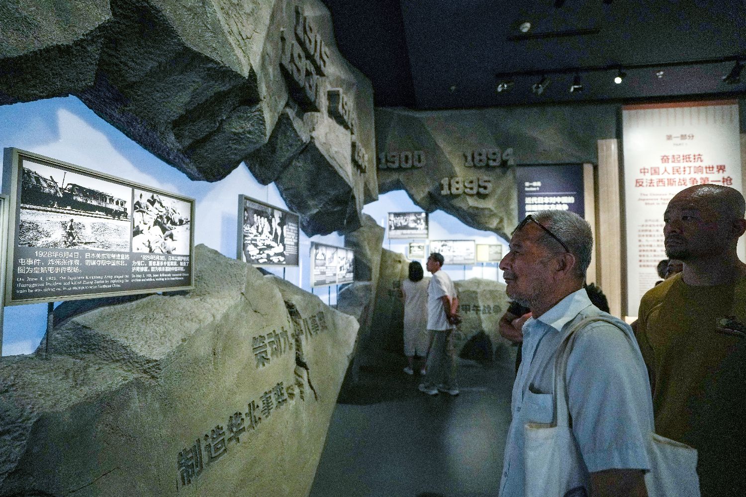 参观者在中国人民抗日战争纪念馆参观《为了民族解放与世界和平》主题展览。(图片来源:本文图片均据新华社)