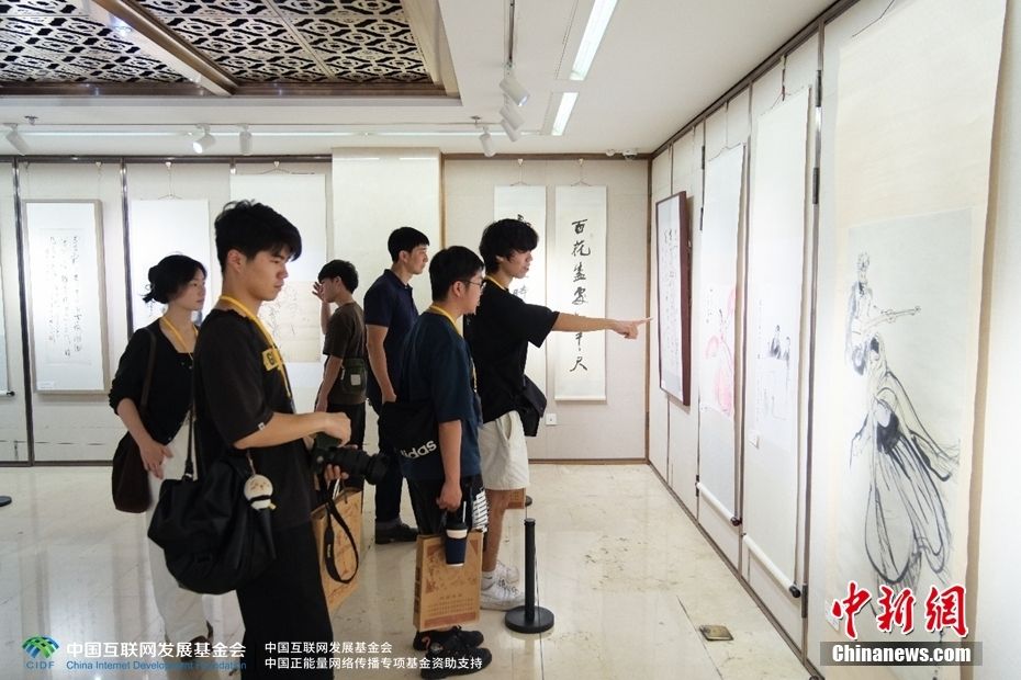 7月5日,同学们在参观过程中讨论作品。