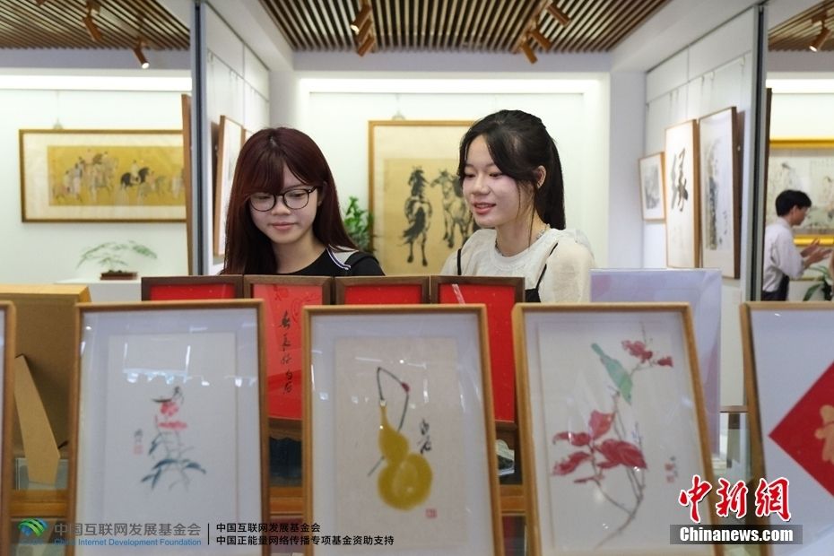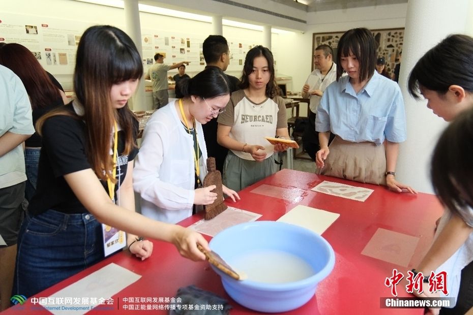 7月5日,同学们在展示木版水印制作过程。