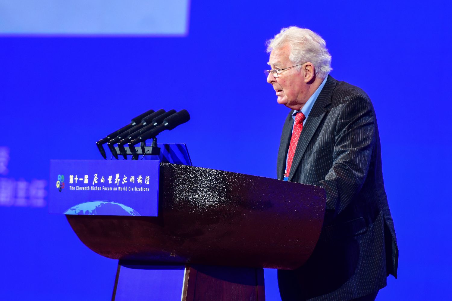 论坛以“各美其美,美美与共——文明间关系与全球现代化”为主题。图为7月9日,汉学家安乐哲在第十一届尼山世界文明论坛演讲。