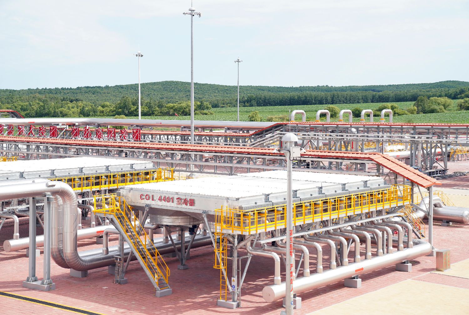 作为中国“十四五”期间建成的重要能源基础设施和“四大能源通道”东北通道的重要组成部分,“北气南下”能源大通道北起黑龙江黑河,南至上海,途经9个省区市,惠及沿线4亿多人口。图为“北气南下”能源大通道黑河首站的空冷器。(图片来源:本文图片均自新华社)