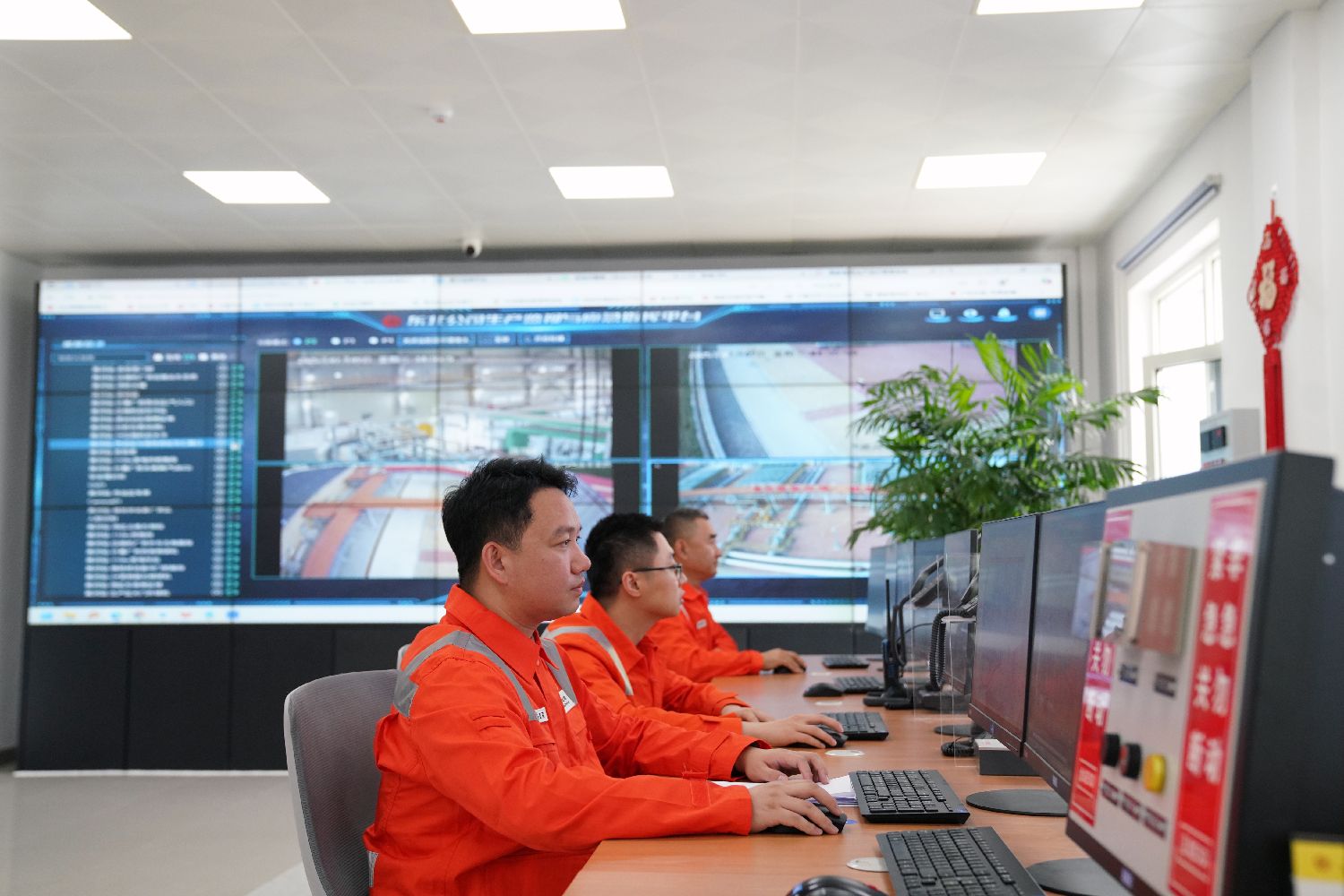 这条纵贯南北的“能源动脉”在保障国家能源安全方面取得稳定进展。图为在“北气南下”能源大通道黑河首站站控室,综合维修工程师在监控场区设备的运行状态。