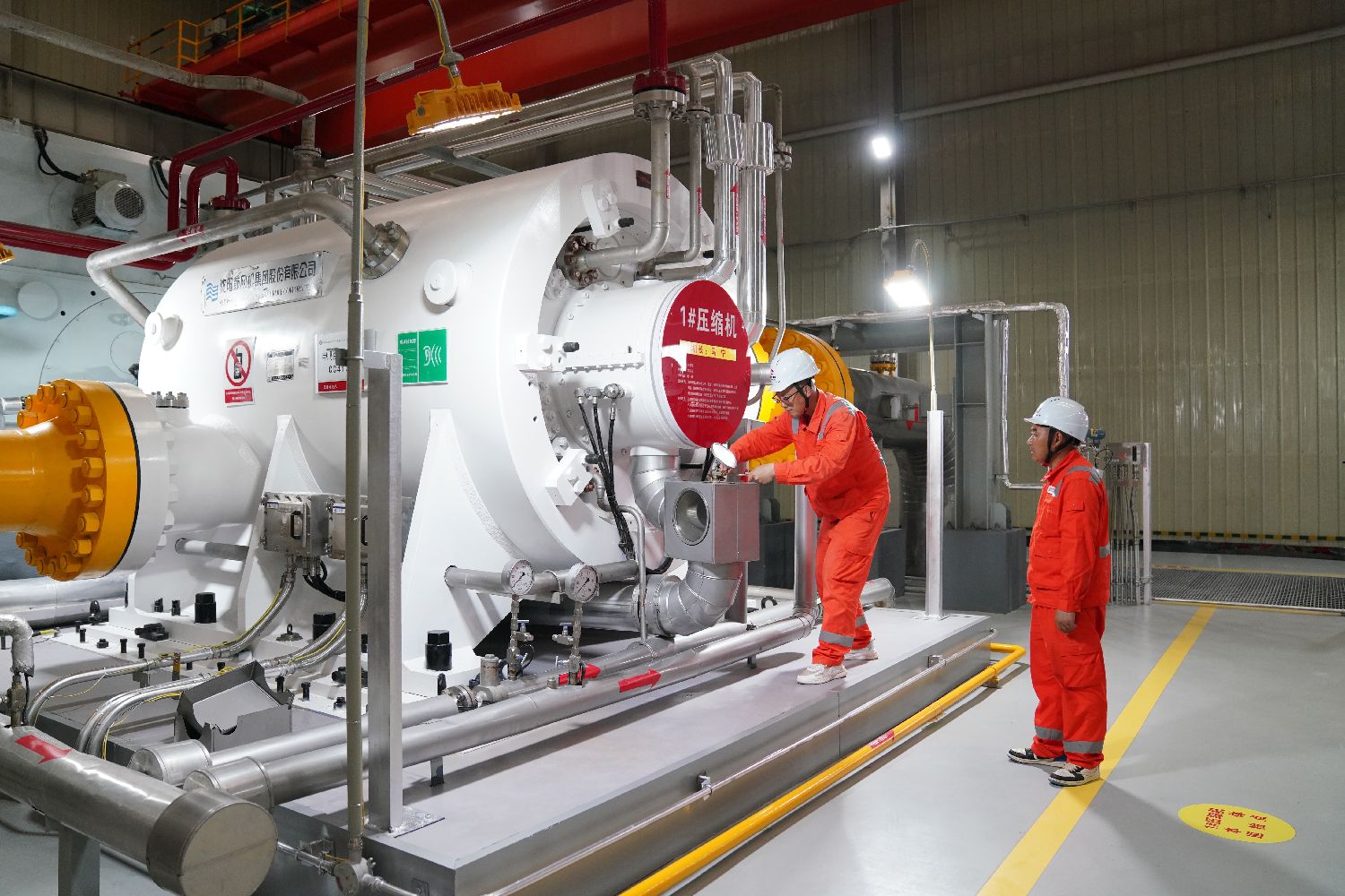 在“北气南下”能源大通道黑河首站压缩机房,综合维修工人对压缩机关键仪表进行维修作业。