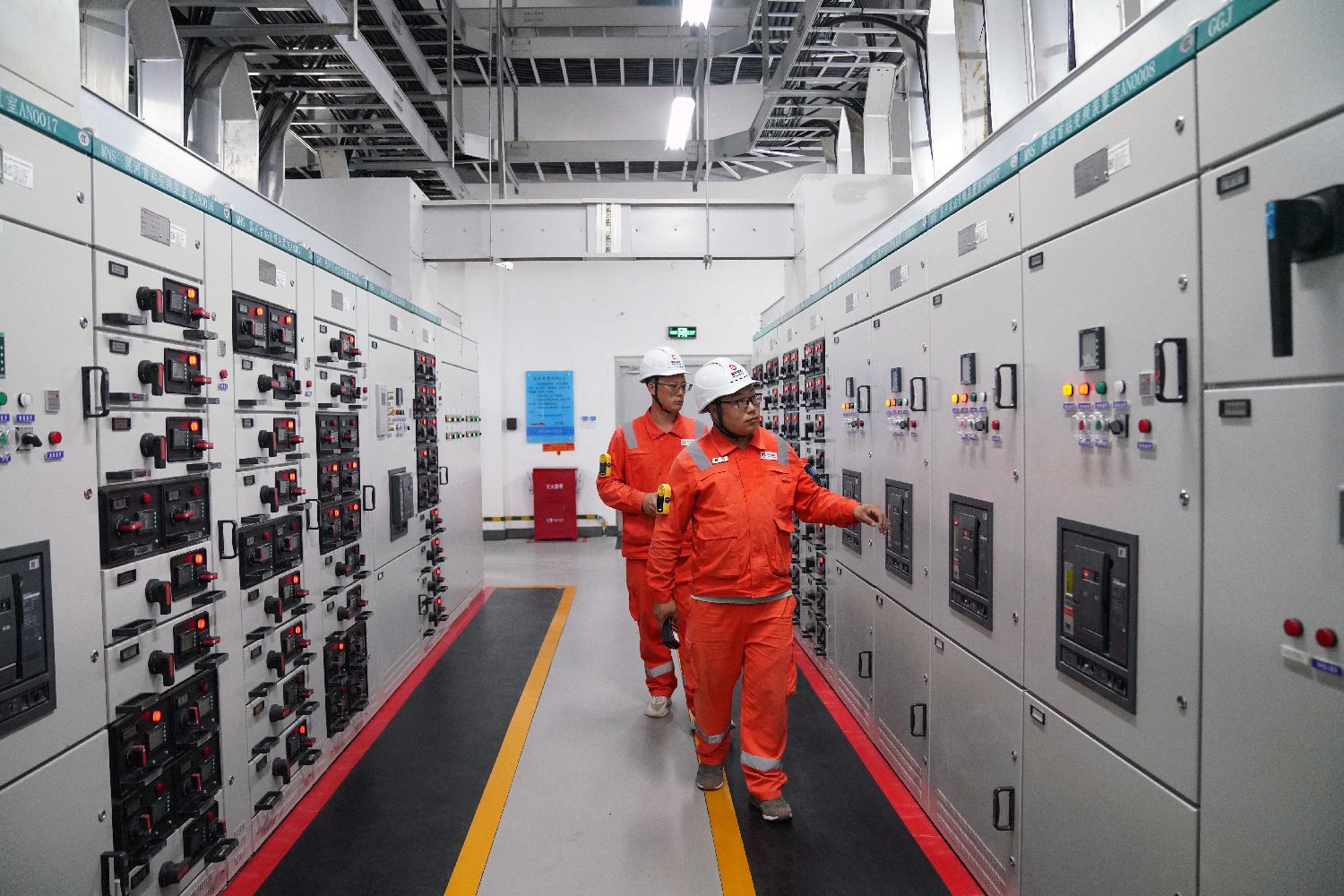 在“北气南下”能源大通道黑河首站配电间,综合维修工人在检查设备供电状态。