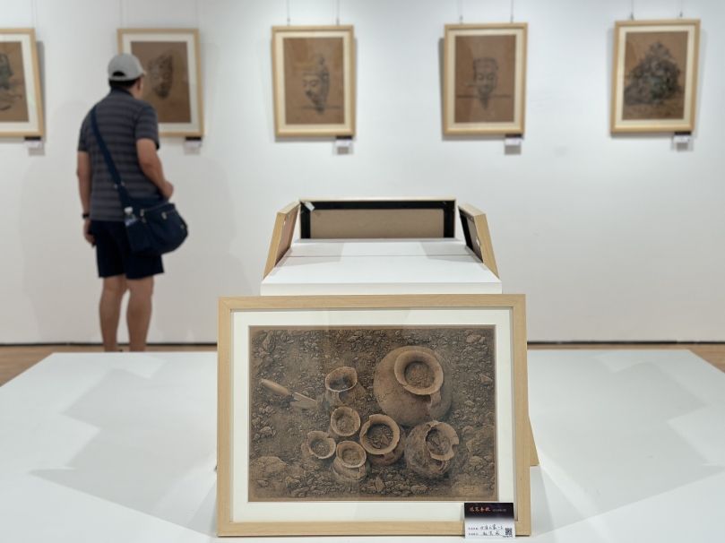 “古人造文物时就带着审美,我们不能用机械的线条把它画呆板了。”他指着一幅汉代陶俑画解释说,通过调整光影层次,突出面部轮廓的转折,让观者一眼捕捉到文物最动人的“表情”。这种兼顾科学精度与艺术张力的技法,正是他从多次考古绘图中淬炼出的心得。