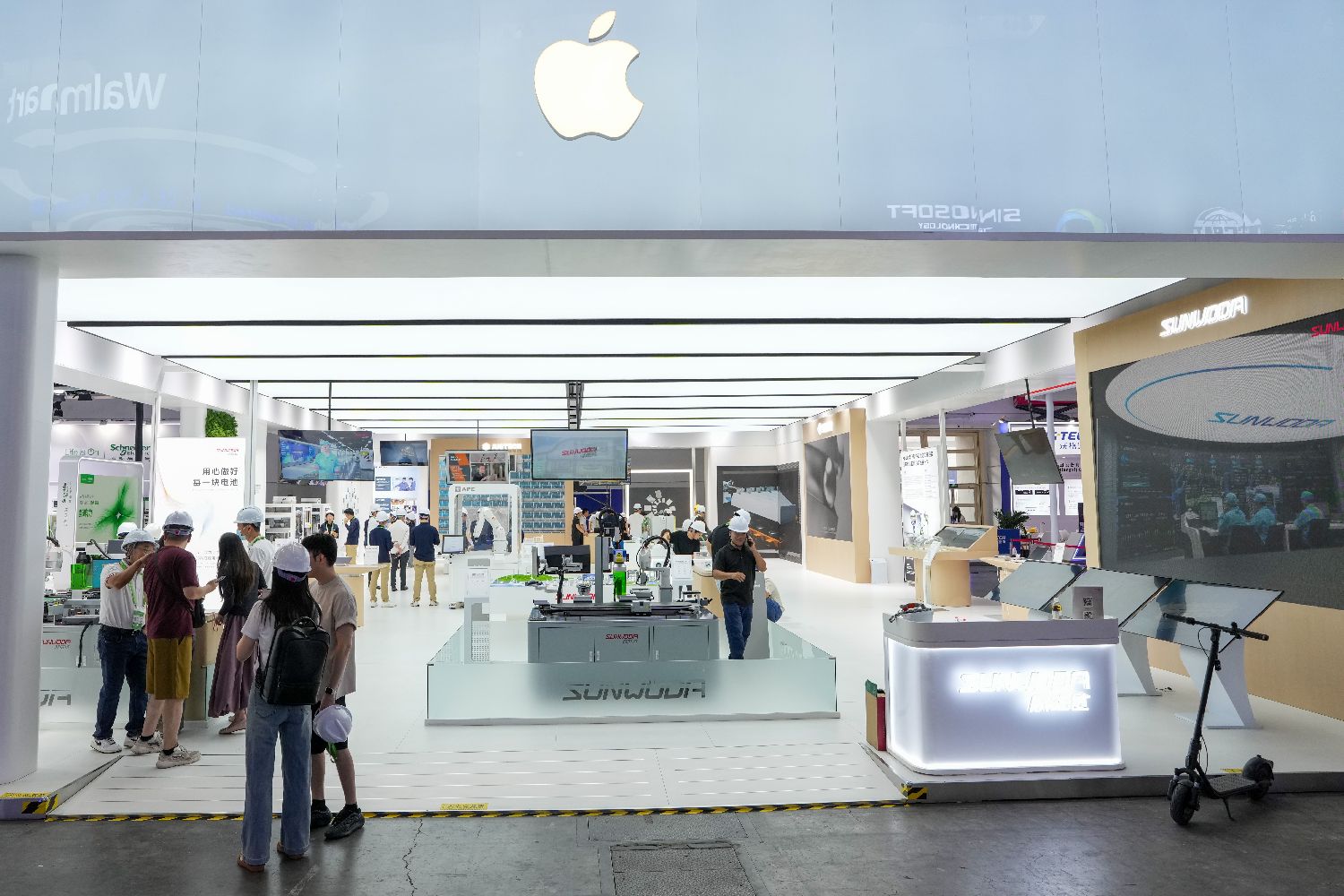 本届链博会共设置先进制造链、智能汽车链、绿色农业链、清洁能源链、数字科技链、健康生活链六大链条和一个供应链服务展区。图为7月14日在第三届中国国际供应链促进博览会数字科技链展区拍摄的苹果供应链展位。(图片来源:本文图片均据新华社)
