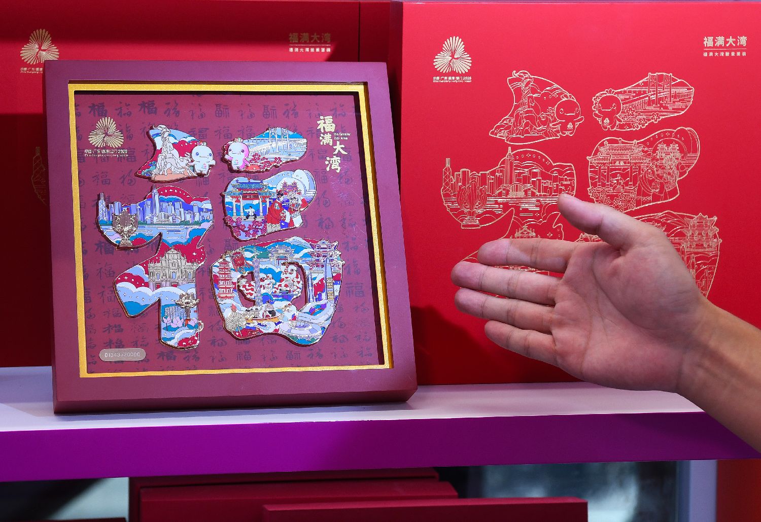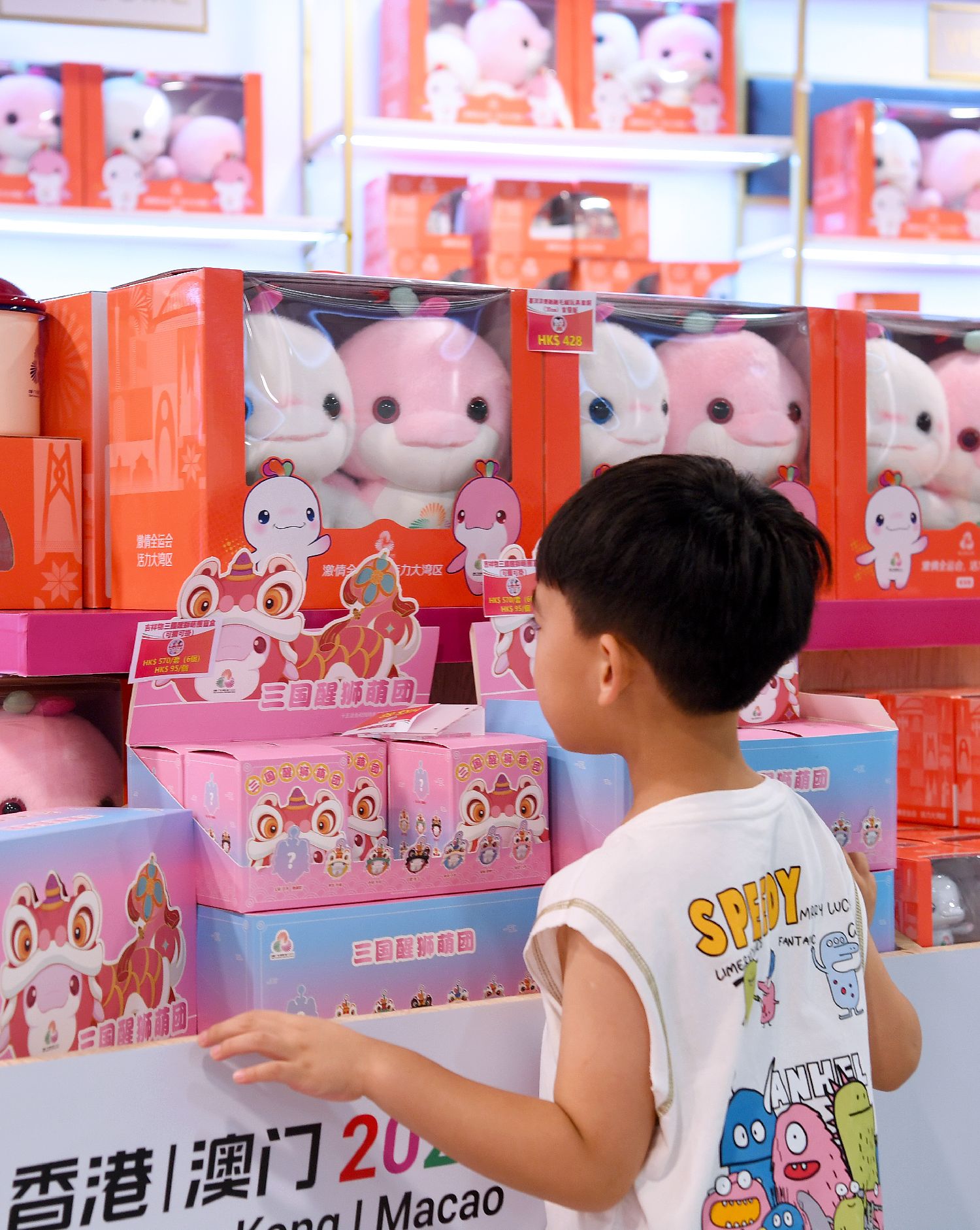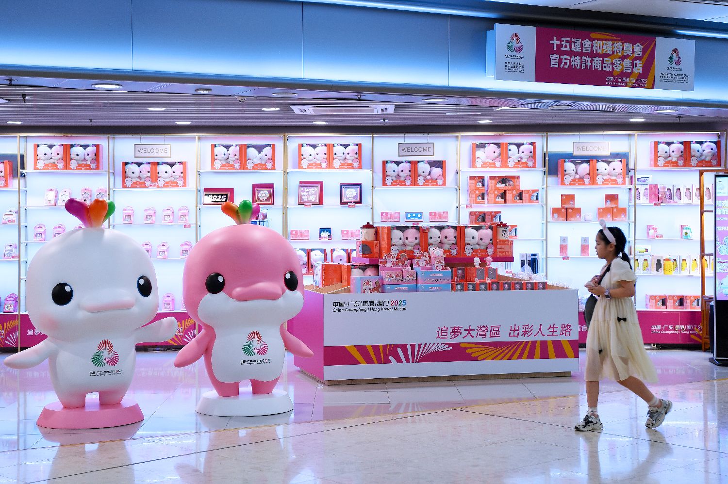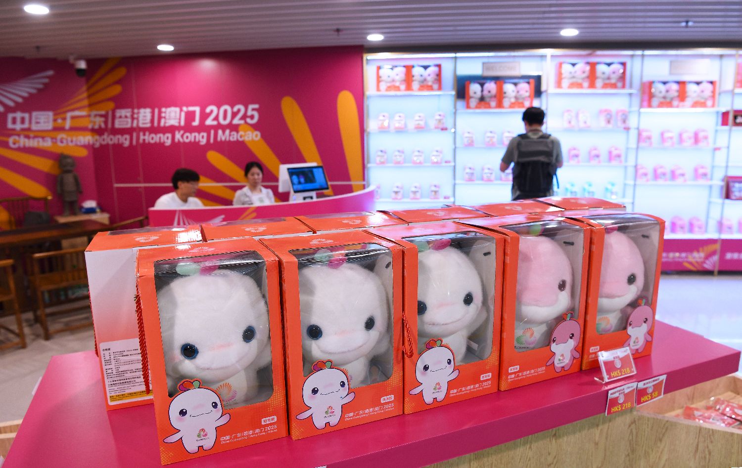 这是7月14日在香港湾仔入境事务大楼官方零售店拍摄的全运会特许商品“福满大湾”。