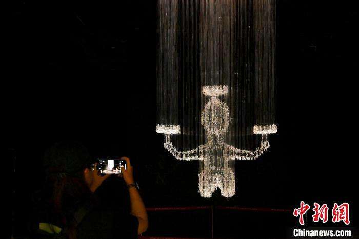 灯珠穿成的“三枝俑铜灯”吸引观众拍照。(图片来源:中新网)