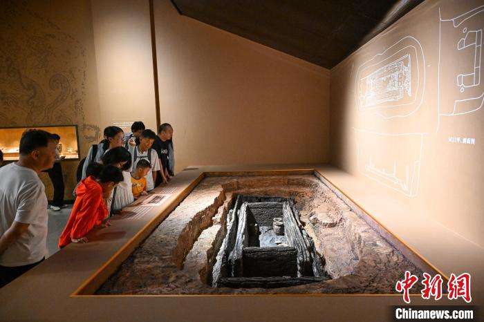 图为展出的大型木棺椁。(图片来源:中新网)