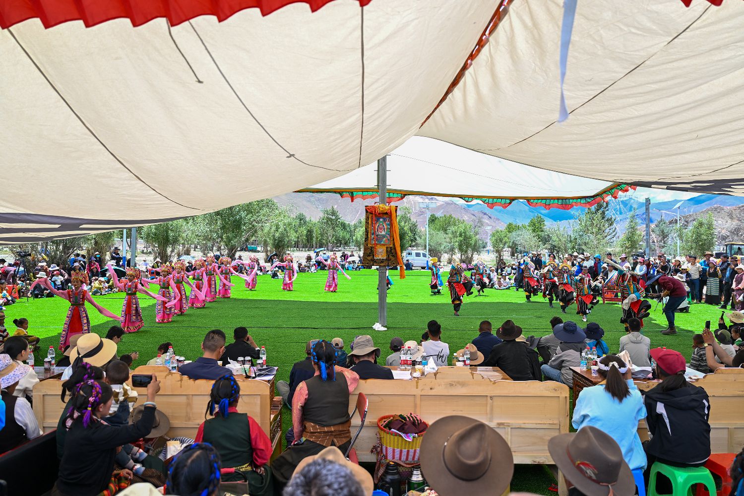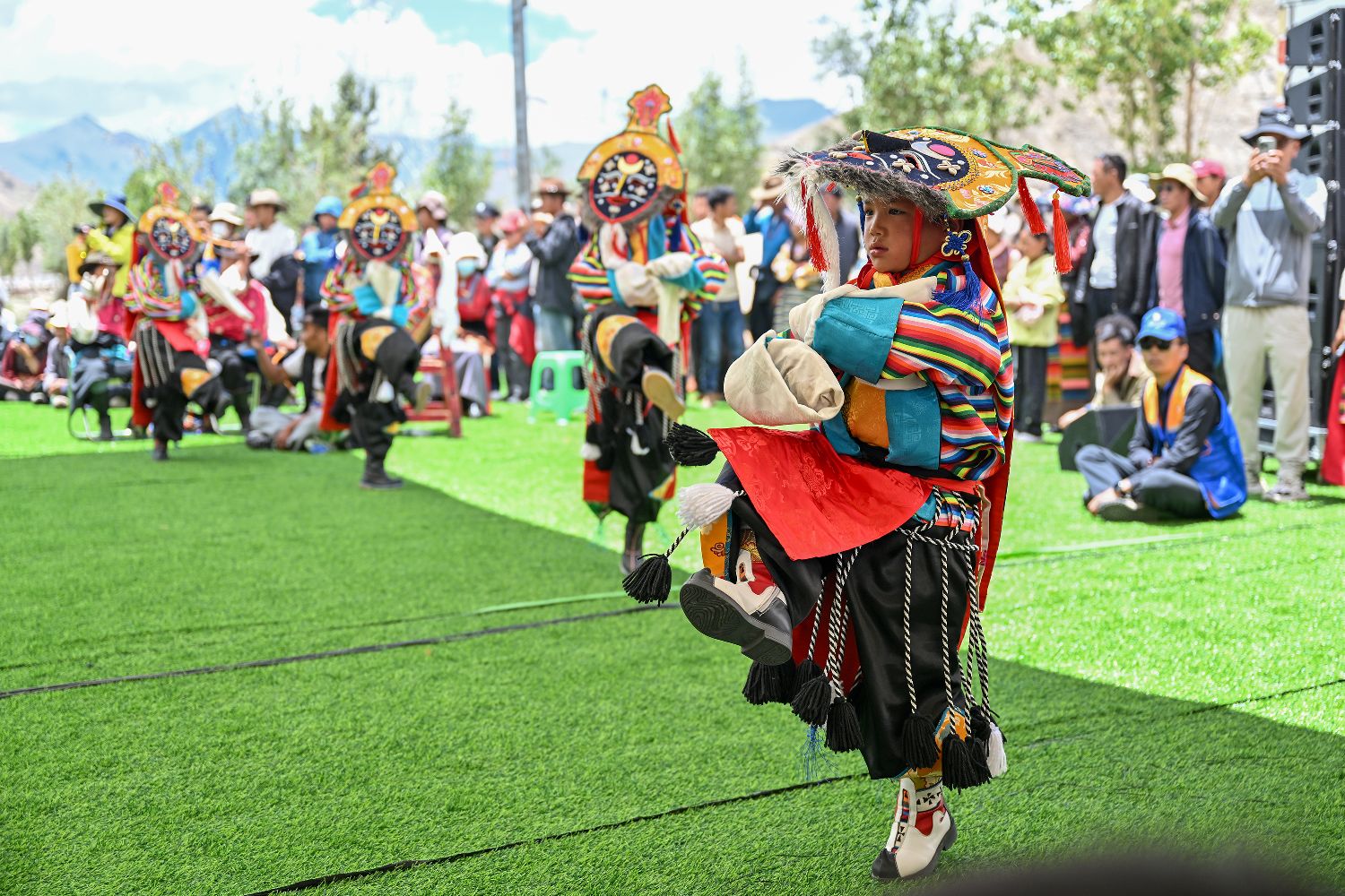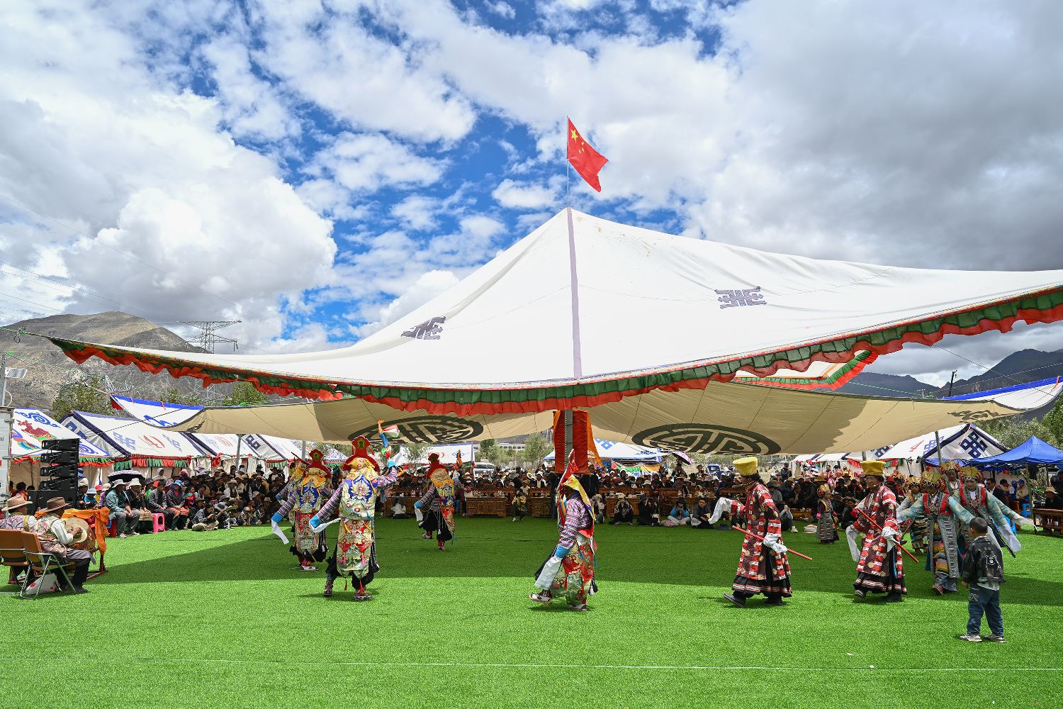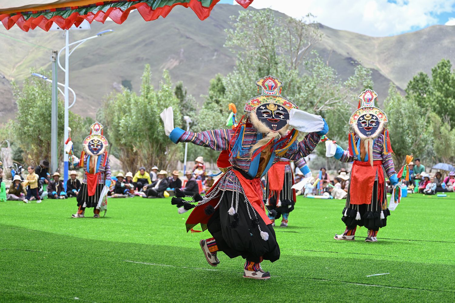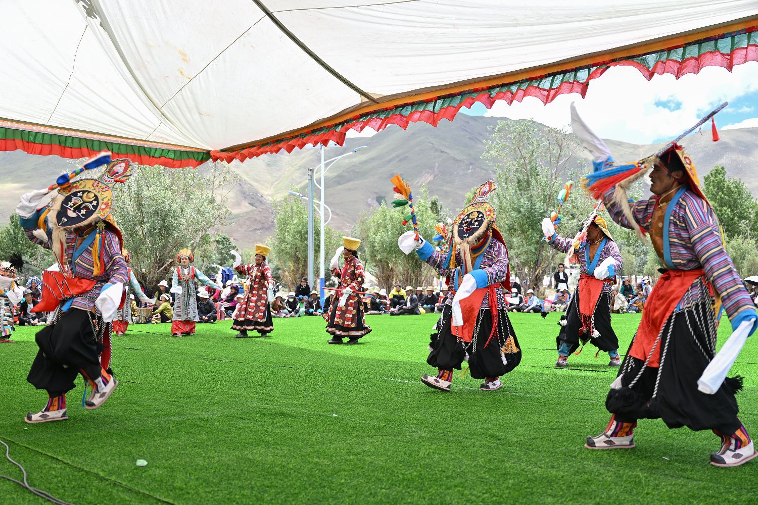 近年来,南木林县积极推动惠民演出常态化,培育人才梯队,构建藏戏传承体系。图为7月16日,民间藏戏表演队在南木林县非遗公园内表演湘巴藏戏。(图片来源:本文图片均来自新华社)