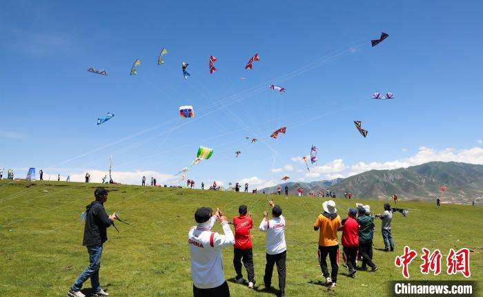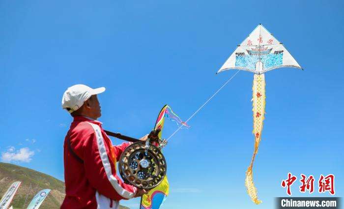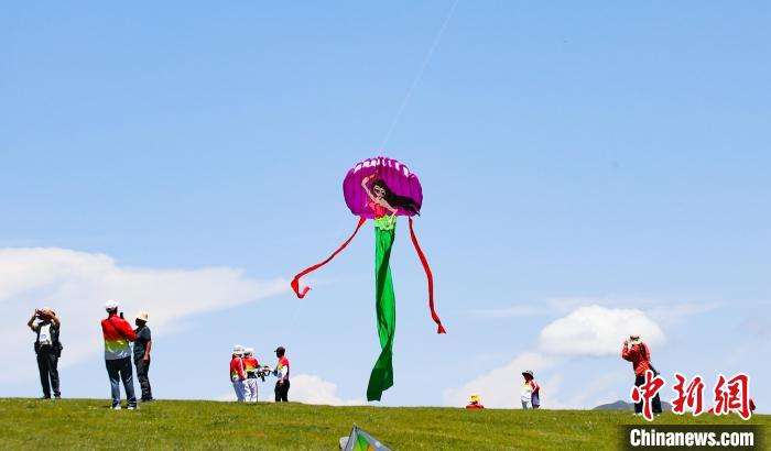 选手在青海日月山放飞风筝。