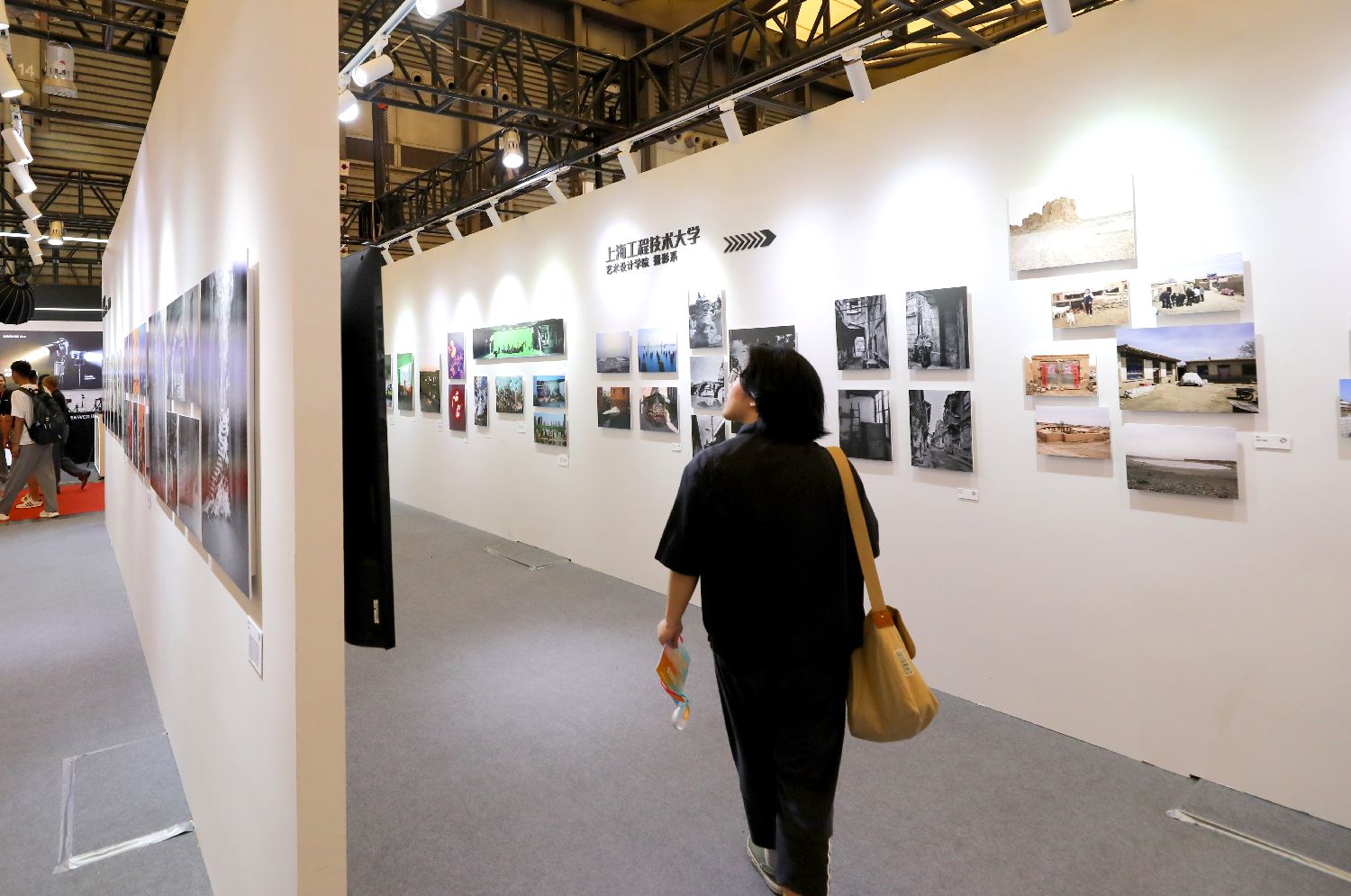 7月17日,参观者在长三角高校青年师生影像作品联展欣赏摄影作品。
