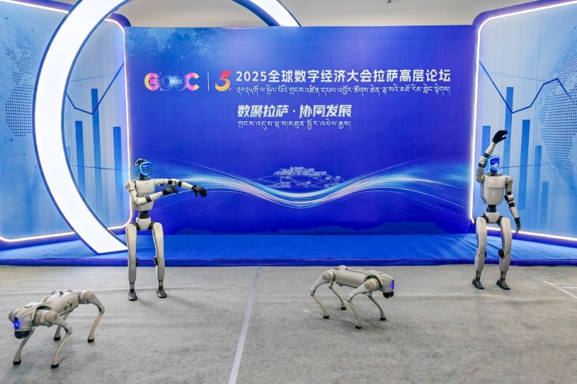 7月17日,2025全球数字经济大会拉萨高层论坛上展示的机器人。(图片来源:中新社)
