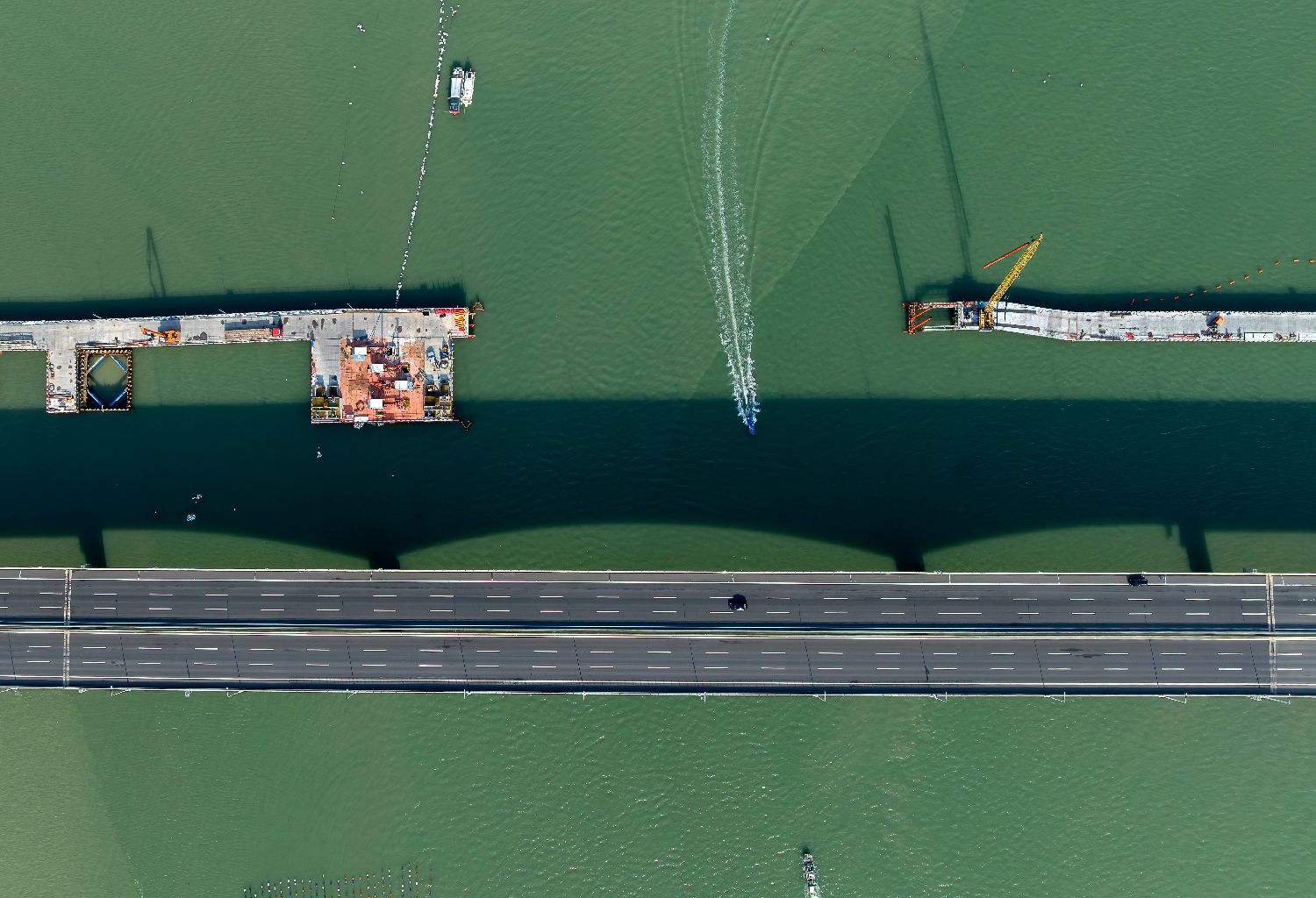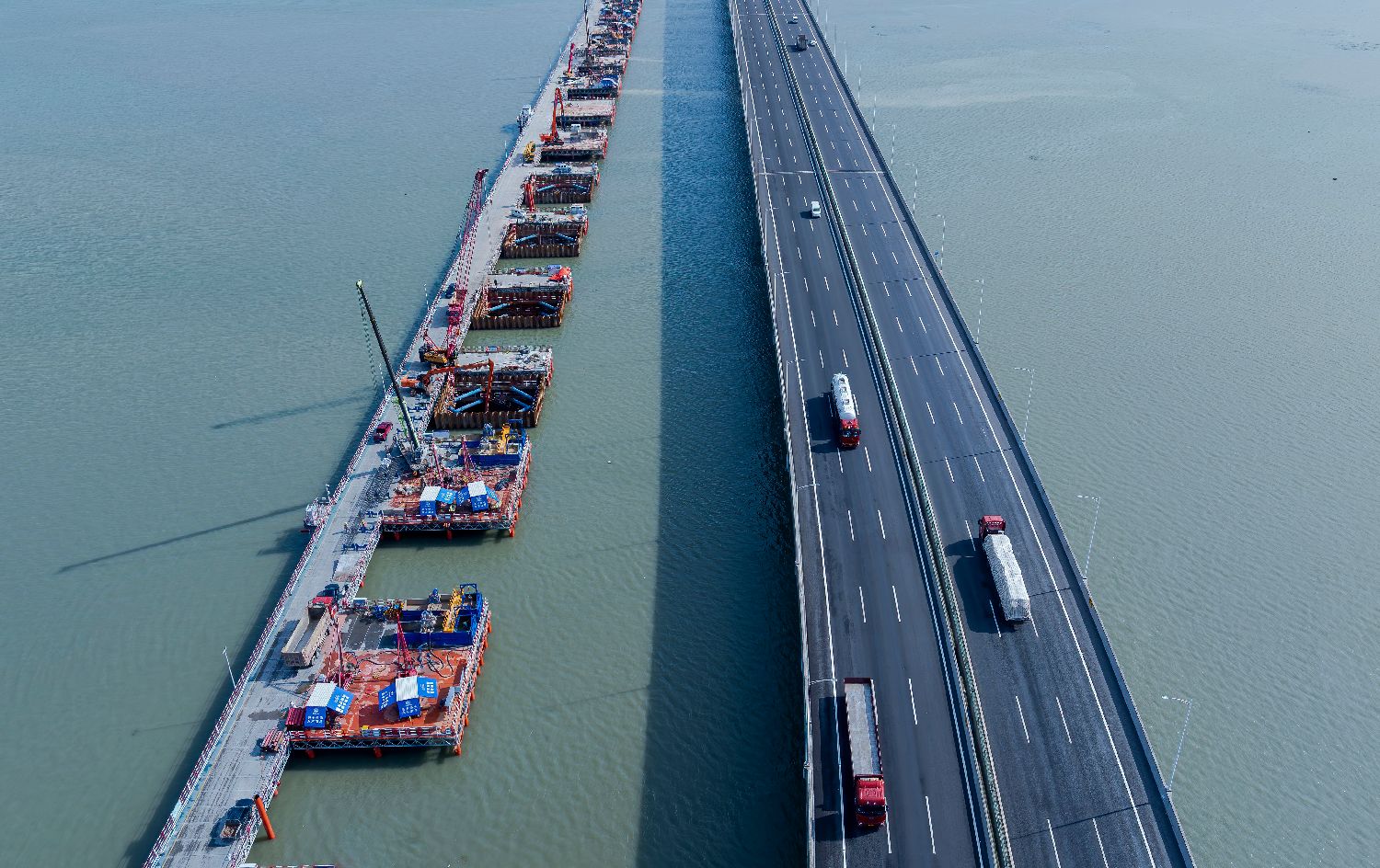 7月18日,新建漳汕高铁全线控制性工程漳江湾跨海特大桥主栈桥完工,为后续海上各工作面施工奠定基础。漳汕高铁漳江湾跨海特大桥桥梁全长5.8公里,海域部分桥梁长5公里。